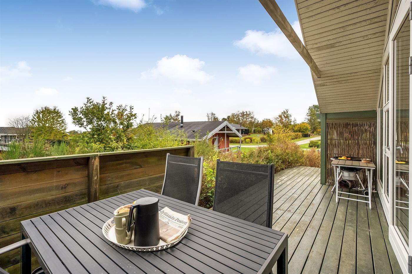 Das Haus liegt auf einem großen und schönen Grundstück mit viel Platz für Ballspiele und andere Aktivitäten im Freien. Die teilweise überdachten Terrassen, die sich auf mehreren Seiten des Hauses befinden, bieten die Möglichkeit an, den ganzen Tag über der Sonne zu folgen, und es gibt immer eine gemütliche Ecke mit Windschutz, in der man die Ruhe in vollen Zügen genießen kann. Von einer der Terrassen – sowie vom Inneren des Hauses – hat man zudem einen schönen Blick auf das Wasser.