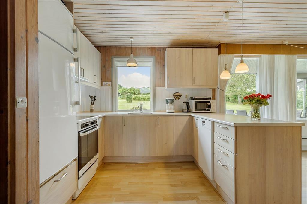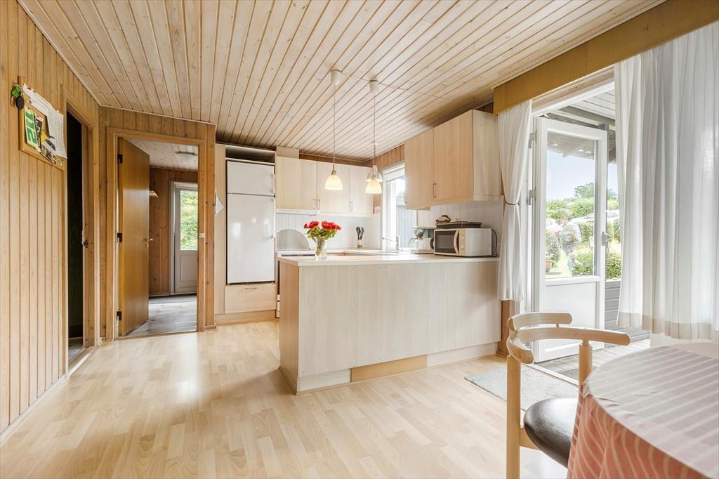 Willkommen an einem Ort, an dem die Natur und die Ruhe dich empfangen und an dem Erinnerungen geschaffen werden, die du dein Leben lang behalten wirst. Stell dir vor, du betrittst ein gepflegtes und gemütliches Ferienhaus aus dem Jahr 1973, das nur 700 Meter vom schönsten Strand und einem charmanten Seehafen in Bønnerup entfernt liegt. Das erste, was dich begrüßt, ist ein offenes Wohnzimmer kombiniert mit einer Familienküche - ein perfekter Raum für geselliges Beisammensein und Entspannung. Im Wohnzimmer findest du einen Holzofen, der an kühlen Abenden Wärme und wohlige Atmosphäre verbreitet. Von hier aus hast du direkten Zugang zu einer überdachten Terrasse, von der aus du die Aussicht auf den herrlichen Garten genießen kannst. Die drei Schlafzimmer bieten Ruhe und Privatsphäre und das Badezimmer ist mit einer Dusche ausgestattet.