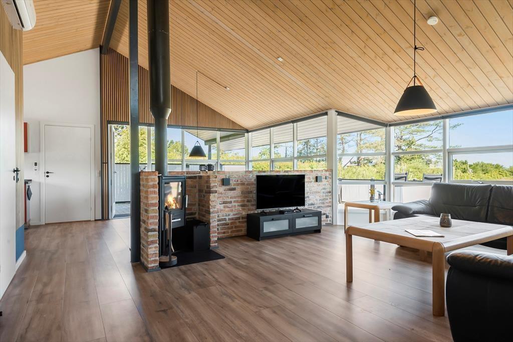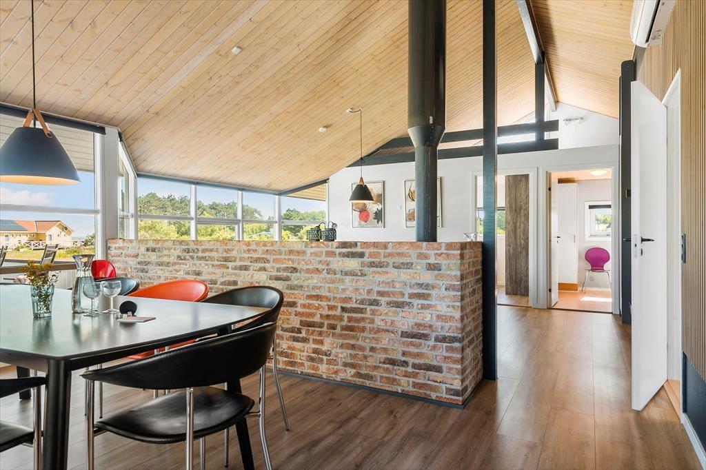 Wir freuen uns, dich in diesem herrlichen Ferienhaus, das nur 180 Meter vom schönen, kinderfreundlichen Badestrand entfernt ist, begrüßen zu dürfen. Das Holzferienhaus wurde im Jahr 2020 modernisiert und begeistert in den meisten Räumen und auf den beiden attraktiven Terrassen mit einer fantastischen Aussicht auf das Meer. Das Mietobjekt ist im sogenannten New York-Stil eingerichtet und wird durch eine mutige Farbwahl geprägt. Bestes Beispiel hierfür ist die schöne orangefarbene Küche. Die offene Wohnlösung trägt maßgeblich zum geräumigen, behaglichen Ambiente bei. Im Badezimmer genießt du nach einem langen Tag am Strand traumhaft erholsame Momente im Whirlpool. Einer der drei Schlafräume empfängt dich mit einem Doppelbett. Die beiden anderen Schlafzimmer haben jeweils zwei Einzelbetten. Praktischerweise stehen dir im Hauswirtschaftsbereich eine Waschmaschine und ein Wäschetrockner zur Verfügung. Dieses Ferienhaus ist eine perfekte Wahl für Familien oder gute Freunde, die erholsame Urlaubstage nah am Strand verbringen wollen und Wert auf moderne Annehmlichkeiten und einen bezaubernden Meerblick legen.