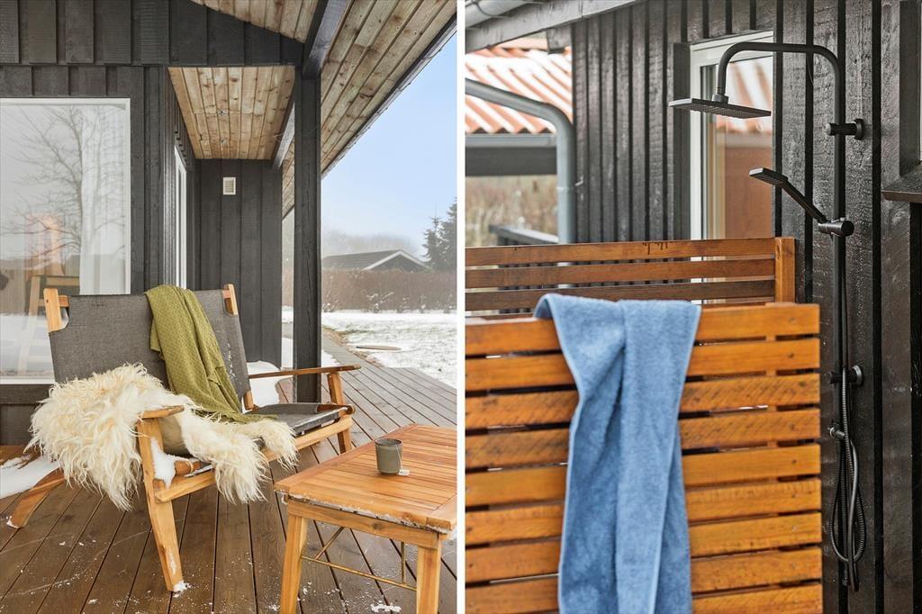 Dein Grundstück erweist sich als wahres Urlaubsparadies, bei dem an wirklich alles gedacht wurde. Das grüne Grundstück ist geschlossenen und eben. Deine Familie genießt viel Privatsphäre und deine Kinder können frei umhertollen. Abends versammelt ihr euch rund um die Lagerfeuerstelle und röstet mit Blick auf die tanzenden Flammen Marshmallows und Stockbrote. Nach einem Tag am Strand spült euch die praktische Außendusche den Sand und das Salz des Meeres von der Haut. Oder wie wäre es mit einem morgendlichen Duschbad im Freien - untermalt vom fröhlichen Vogelgezwitscher? Falls du während deines Urlaubs gerne angelst, darfst du dich auf einen Fischreinigungsplatz freuen, an dem du deinen Fang für den Grill vorbereiten kannst. Mit behaglicher Wärme verwöhnt dich die von außen zugängliche Sauna. Darüber hinaus trennen dein Haus nur 700 Meter vom Strand. Bei diesen Außenbereichen kann sich deine Familie bestens erholen und das entspannte Urlaubsleben in vollen Zügen genießen.