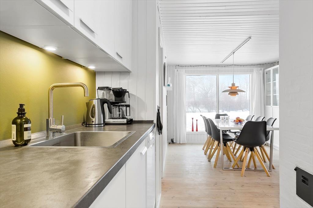 Die Gegend rund um Bønnerup Strand ist angenehm friedvoll und besticht neben hübscher Natur mit einem schönen Badestrand. Tägliche Einkäufe erledigst du im örtlichen Lebensmittelgeschäft und in kleinen Hofläden. Aktive Stunden in der Natur verbringst du in Form von Angelausflügen, Radtouren und langen Spaziergängen entlang der Küste. Im Hafen kannst du dich kulinarisch verwöhnen lassen oder fangfrischen Fisch für deinen Grillabend auf der Terrasse kaufen. Im schönen Sportboothafen und im Fischereihafen geht es insbesondere im Sommerhalbjahr lebendig und geschäftig zu. Jedes Jahr zieht das beliebte Sommerfest zahllose Besucher in den Hafenbereich. Falls deine Kindern Bedarf an sauberer Kleidung haben, kannst du gegen Zahlung von DKK 25 den Waschsalon im Hafenbereich nutzen. Der Strand von Bønnerup zählt zu den kinderfreundlichsten Stränden Norddjurslands. Er überzeugt mit flachem Wasser und einem sandigen Untergrund. Rund eine halbe Stunde Fahrzeit trennt dein Ferienhaus vom größten Vergnügungspark des Nordens, dem Djurs Sommerland, das Action und Spaß für die gesamte Familie verspricht. Ebenfalls rund 30 Minuten entfernt ist die alte Handelsstadt Ebeltoft. In Grenaa begrüßt euch das tolle Kattegatcenter. Vom Hafen Grenaas aus legen zudem täglich die Fähren zur kleinen Insel Anholt und nach Schweden ab. Empfehlenswert ist ein Picknickausflug zur hübschen Steilküste Sangstrup Klint. Diese präsentiert sich ausgesprochen schön und bietet zudem tolle Möglichkeiten, Fossilien, versteinerte Seeigel und dergleichen zu finden. Schön und interessant sind außerdem Schloss Mejlgaard und Schloss Sostrup. Unverkennbar bietet Djursland zahllose Sehenswürdigkeiten und Attraktionen für jeden Geschmack und jedes Alter.