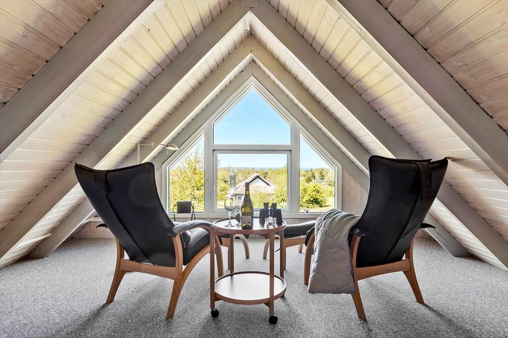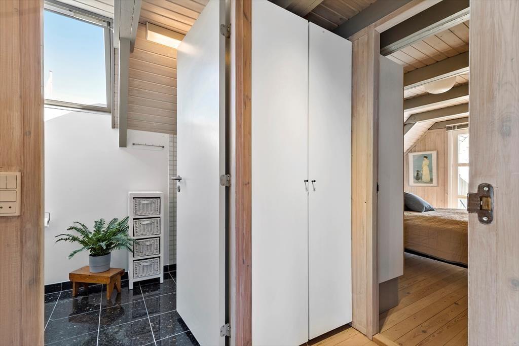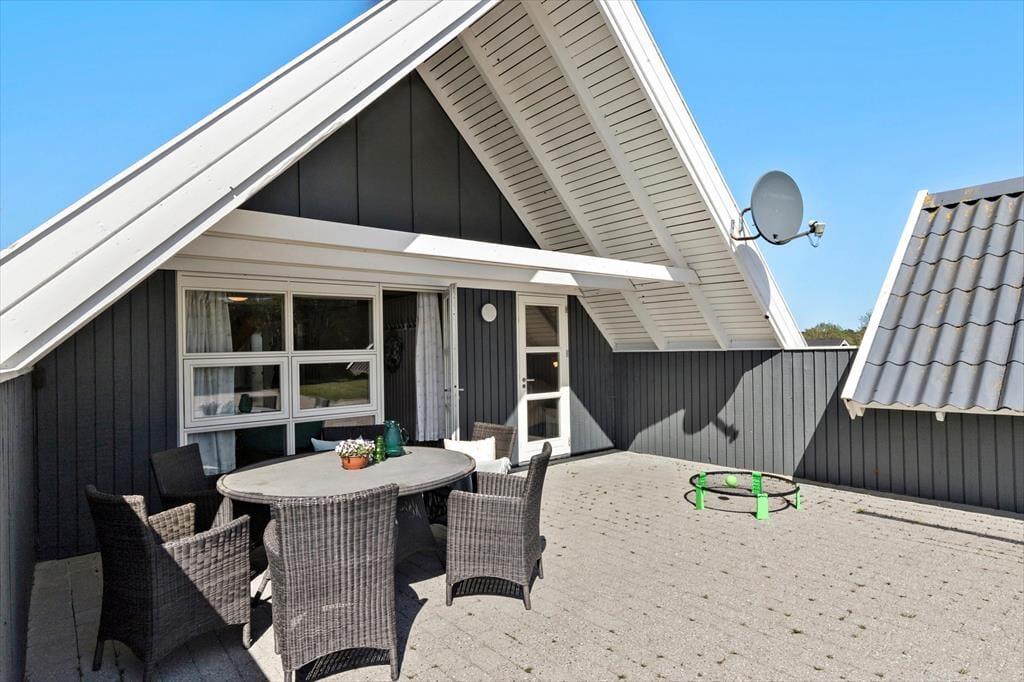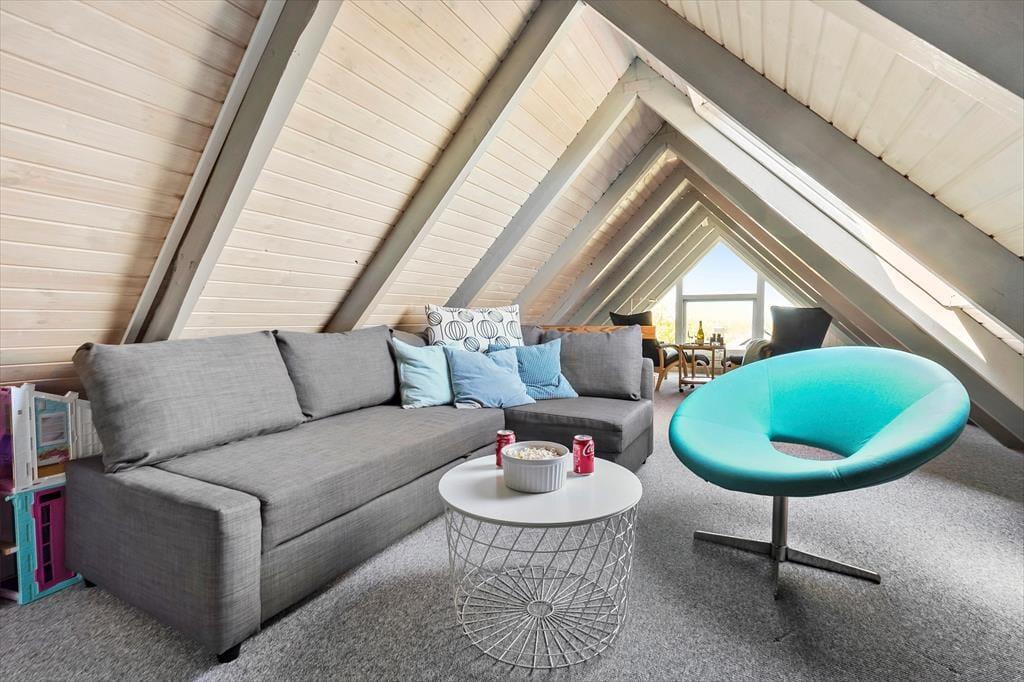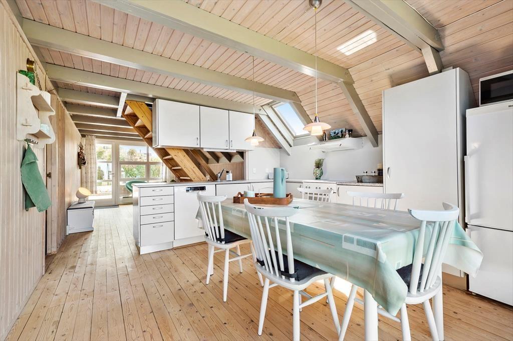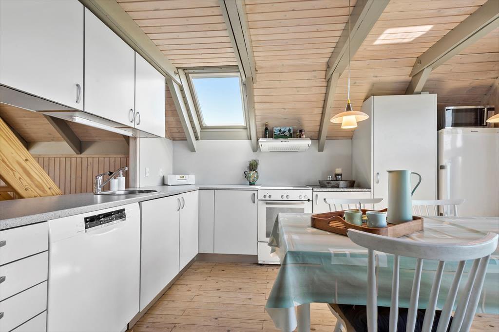 Tretet ein in diese gemütliche Familienoase, in der jeder Winkel des gepflegten Hauses eine tolle Kulisse für wertvolles Zusammensein mit der Familie bietet. Ein wahrer Rückzugsort, in dem man schnell zur Ruhe kommt, wenn man von der schönen Atmosphäre umarmt wird, die Erinnerungen an die Ferien in einem Ferienhaus in der Kindheit wachruft. Bereitet euch auf den Tag vor, indem ihr euch im gepflegten Badezimmer frisch duschen könnt, bevor ihr auf der Morgenterrasse einen Kaffee aus der Küche zu euch nehmt. Hier ist der Sonnenschirm aufgespannt und die Kinder spielen bereits im Sandkasten und freuen sich auf den Strandausflug am Nachmittag. Es erwartet euch eine fröhliche, helle und gemütliche Küche mit dem Esstisch in der Nähe und ein Zugang zur schönen Abendterrasse und 2 Schlafzimmern. Im Wohnzimmer oben tanzt die Sonne durch die Fenster und man genießt den Blick und den Sonnenuntergang über dem Meer in der "Erwachsenenecke", nachdem die müden Ferienkinder in einem der Zimmer schlafen. Am anderen Ende des Wohnzimmers im Obergeschoss befindet sich eine gemütliche Fernsehecke mit einem Schlafsofa. Außerdem gibt es einen gemütlichen Anbau mit zwei guten Einzelbetten.