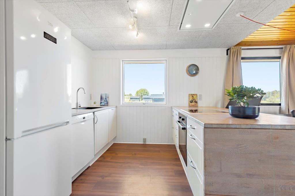 Freu dich bereits jetzt auf einen tollen Familienurlaub in diesem Ferienhaus, das einen schönen Rahmen für unvergessliche Urlaubserlebnisse bietet. Das geräumige Mietobjekt beinhaltet eine neue, moderne Küche, in der du deiner Kreativität beim Kochen freien Lauf lassen kannst. Die Kücheninsel fungiert nicht nur als Arbeitsplatz, sondern Dank der Hocker zugleich als Bartresen, den alle gerne nutzen. Die offene Küche harmoniert gut mit dem Essbereich und dem gemütlichen Wohnraum, in dem komfortable Polstersitzmöbel und ein Fernseher zu erholsamen Stunden nach einem langen, erlebnisreichen Urlaubstag einladen. Die Schlafplätze verteilen sich auf drei Schlafräume, von denen einer mit einem Doppelbett eingerichtet ist. Im zweiten Raum triffst du ein Etagenbett und im dritten auf ein Doppelbett und ein darüber angebrachtes Hochbett für eine Person - am besten für ein Kind. In einem Winkel des Eingangsbereiches stehen ein doppeltes Schlafsofa und ein Fernseher zur Verfügung. Dadurch bieten sich schöne Rückzugsmöglichkeiten zum Lesen, zum Anschauen eines spannenden Films und zum Spielen. Schlussendlich muss das tolle, neue Badezimmer erwähnt werden, das mit einer großen Duschkabine, einer Waschmaschine und einem Wäschetrockner zu überzeugen weiß.