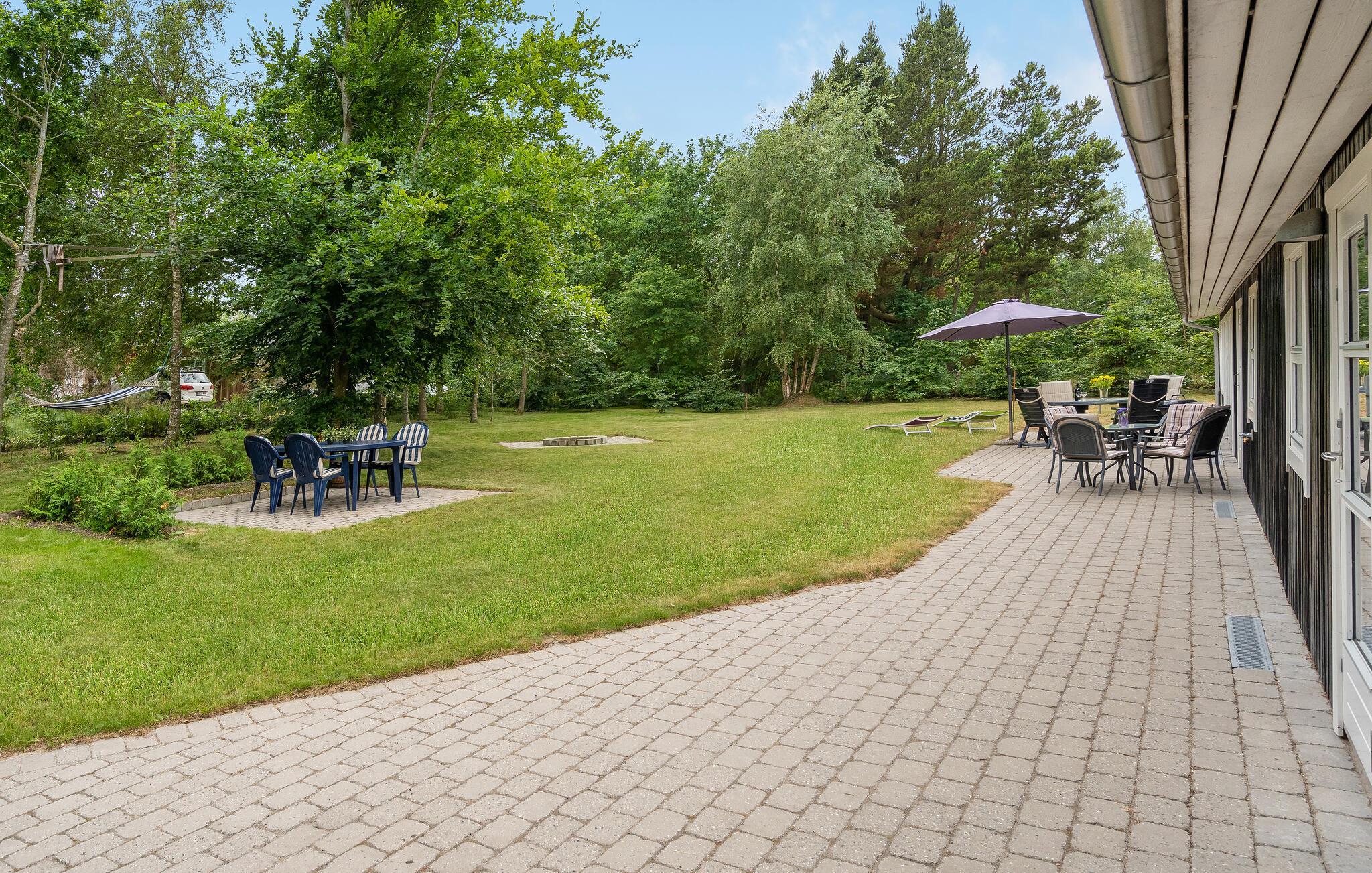 Der Außenbereich des Ferienhauses ist gepflegt. Hier können Sie im eingezäunten Garten entspannen, gemütlich zusammen Grillen und eine gute Zeit im Freien genießen.