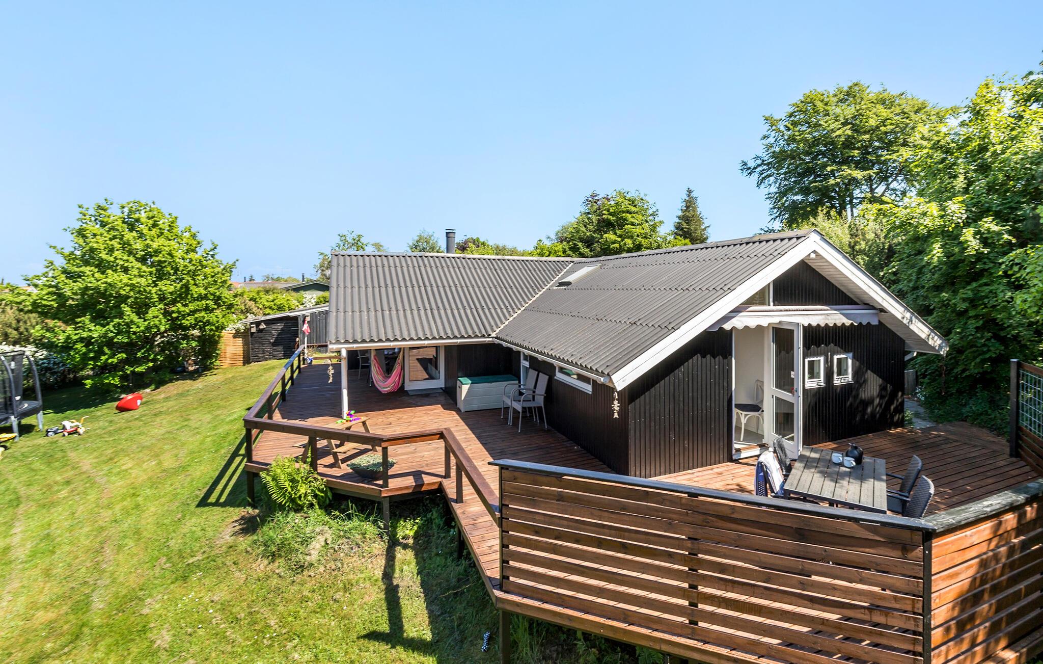 Gemütliches Ferienhaus nahe Bønnerup Strand mit Whirlpool, Spielturm und idyllischem Naturgrundstück für erholsame Tage.