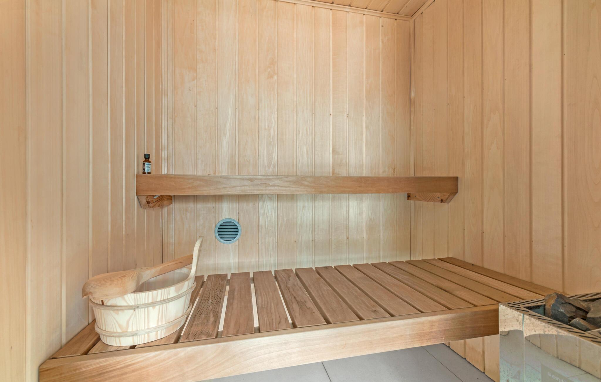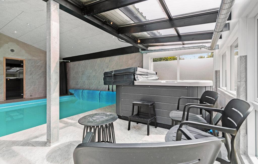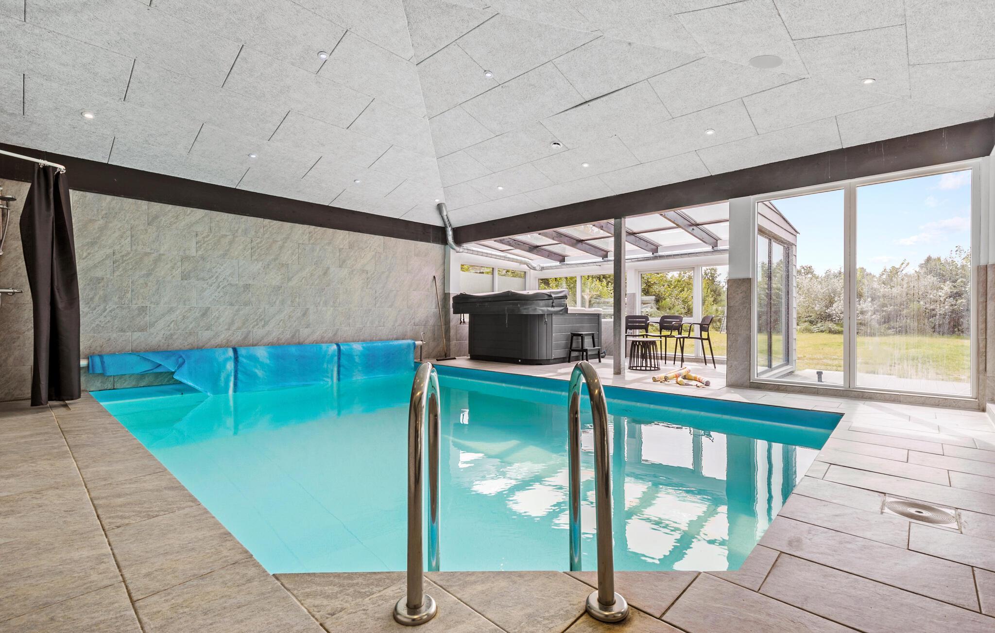 Modernes Ferienhaus in Glesborg mit Innenpool, Sauna und Nähe zum Bønnerup Strand – ideal für Familien und Gruppen.