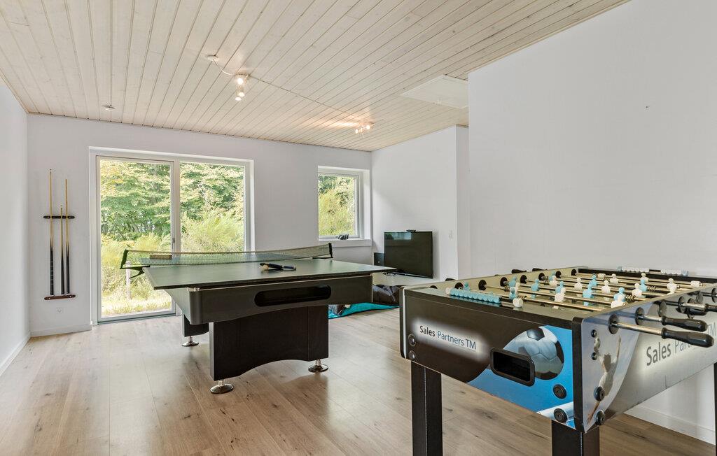 Tauchen Sie ein in pure Entspannung und zahlreiche Freizeitmöglichkeiten in Ihrem komfortablen Ferienhaus am Bønnerup Strand im Norden von Djursland. Ihr Ferienhaus bietet Platz für mehrere Familien oder eine größere Reisegruppe. Beginnen Sie Ihren Tag mit einem leckeren Frühstück in Ihrem großzügigen Ferienhaus, das nur wenige Minuten von der malerischen Küste entfernt ist. Nutzen Sie im Laufe des Tages Ihren Innenpool für ganz viel Spaß im Wasser oder entspannen Sie im Whirlpool und in der Sauna. Für einen kurzweiligen Aufenthalt sorgen zudem der Billard- und der Tischtennistisch. Veranstalten Sie sportliche Turniere, hüpfen Sie mit den kleinen Urlaubsgästen draußen auf dem Trampolin und spielen Sie nach Herzenslust Fußball und andere Ballspiele. Lassen Sie einen wunderbaren Tag im finnischen Holzbad ausklingen.
