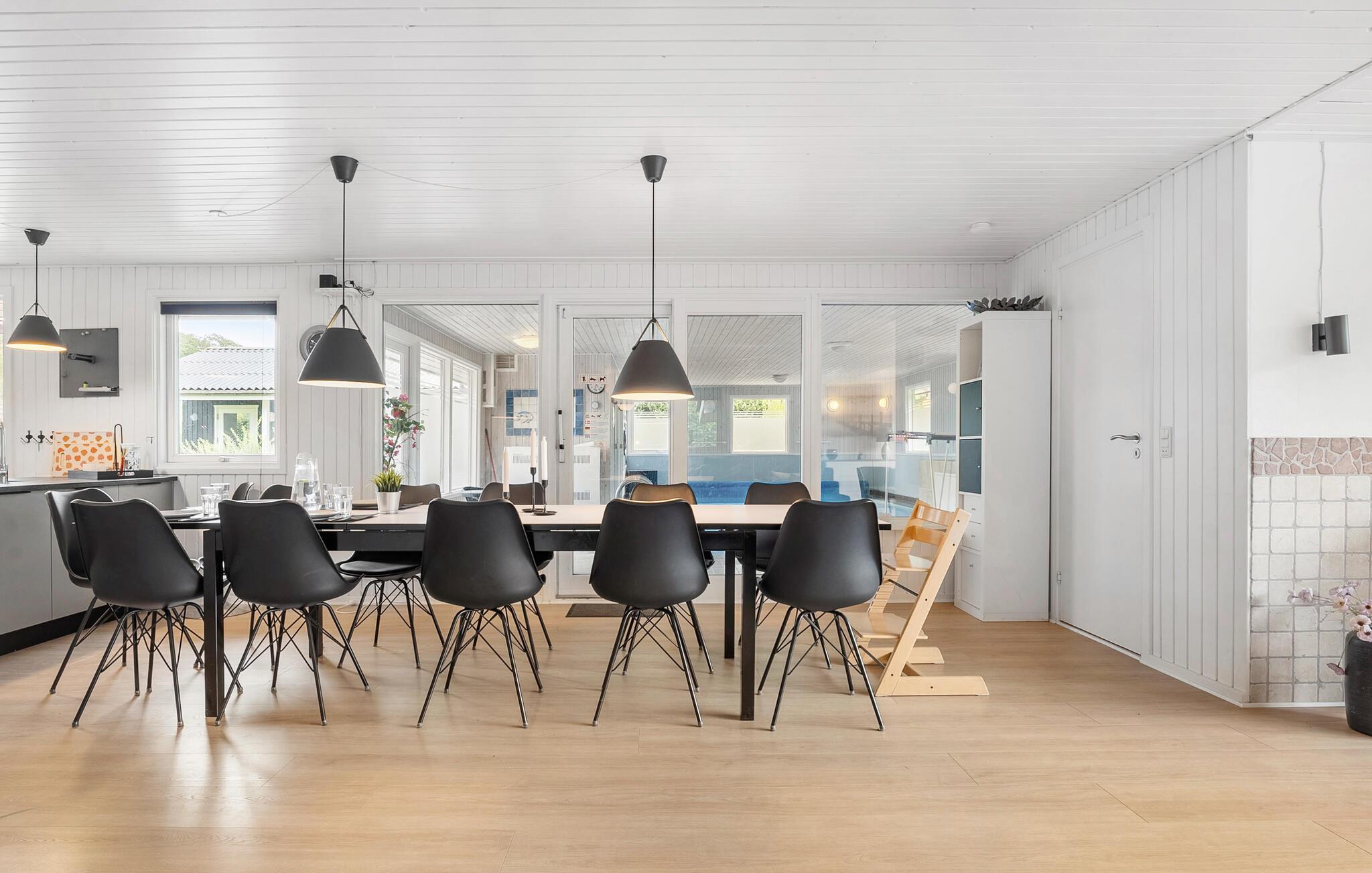 Dieses nette Poolhaus wurde in der Nähe vom kleinen Fischerdorf Bønnerup Strand gebaut. Von hier aus sind es nur wenige Minuten zu Fuß zum Badestrand. Das Haus ist farbenfroh und gut eingerichtet und gut für den Sommer- wie den Winterurlaub, auch für mehrere Familien geeignet. Im 32 m² großen Swimmingpool können Sie sich fit halten. Nach dem Schwimmen bieten Sauna und Whirlpool viel Entspannung. Die Küche ist mit dem Wohnzimmer kombiniert, wo ein knisternder Kaminofen für Gemütlichkeit sorgt. Das Haus verfügt über insgesamt 5 Schlafzimmer, von denen sich das Zimmer mit den Etagenbetten am weitesten vom Wohnzimmer entfernt befindet, sodass die jüngsten Familienmitglieder abends ungestört schlafen können. Im Nebengebäude befindet sich ein Tischfußballspiel.