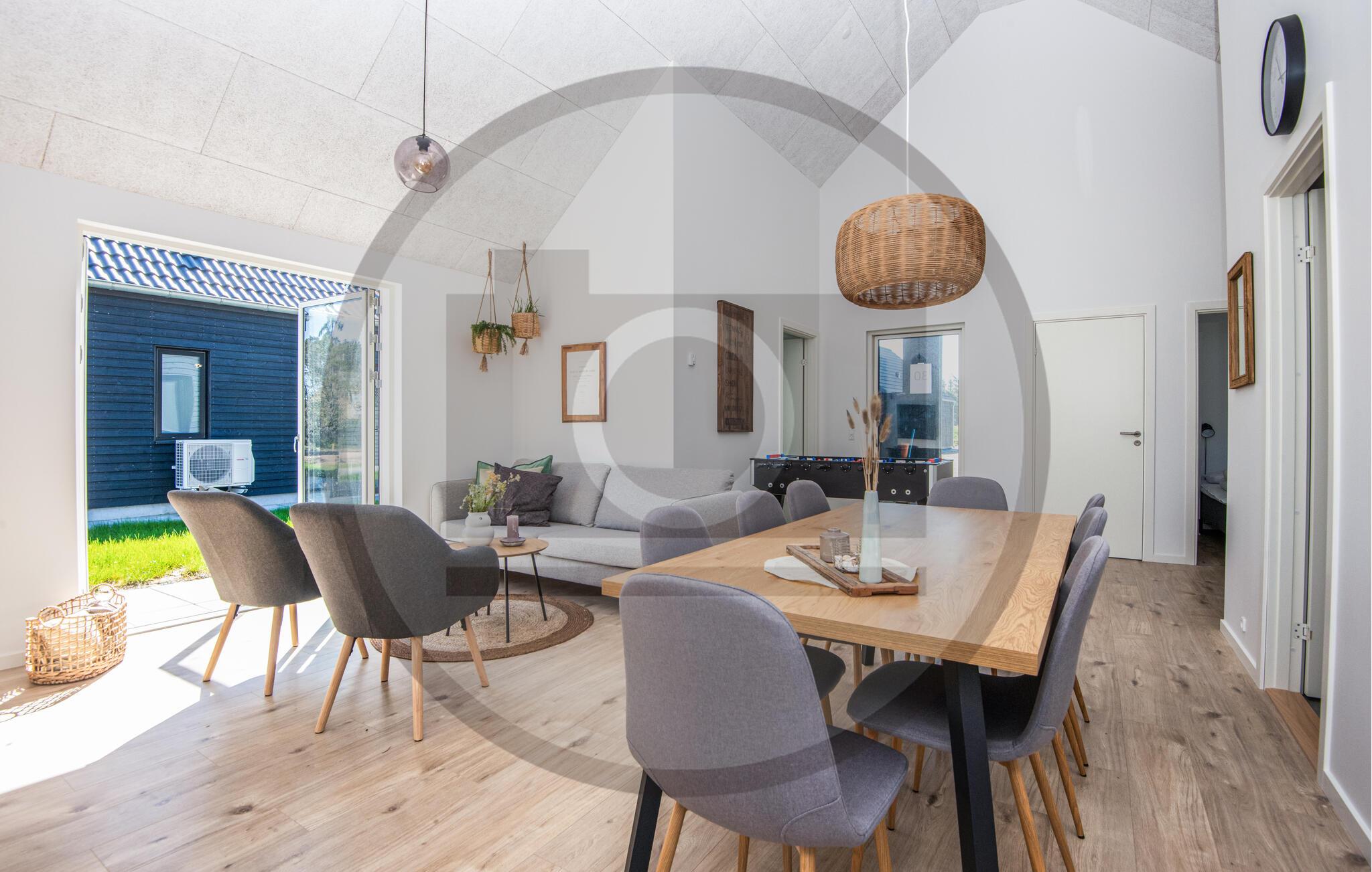 Nahe dem Strand erwartet Sie dieses gemütliche und komfortable Ferienhaus. In den wohnlichen und modernen Räumen finden Sie ausreichend Platz für einen Urlaub mit der Familie oder einer Gruppe von Freunden. Machen Sie es sich nach erlebnisreichen Tagen im Wohnbereich bequem, wo Sie Karten spielen, gemeinsam kochen oder einfach die Füße hochlegen und entspannen können.