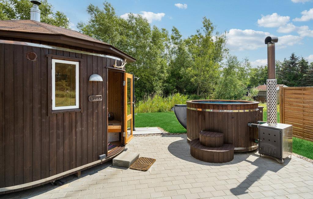 Genießen Sie im Freien in vollen Zügen die Sonne, machen Sie es sich auf der Terrasse bequem und genießen Sie wohltuende Bäder unter freiem Himmel im Finnischen Holzbad.