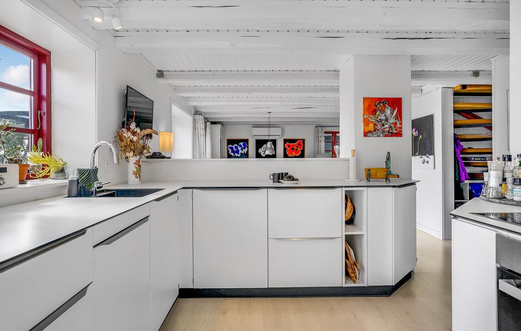 Am Bøged Strand und in der allerersten Reihe am Strand platziert befindet sich dieses Ferienhaus.
