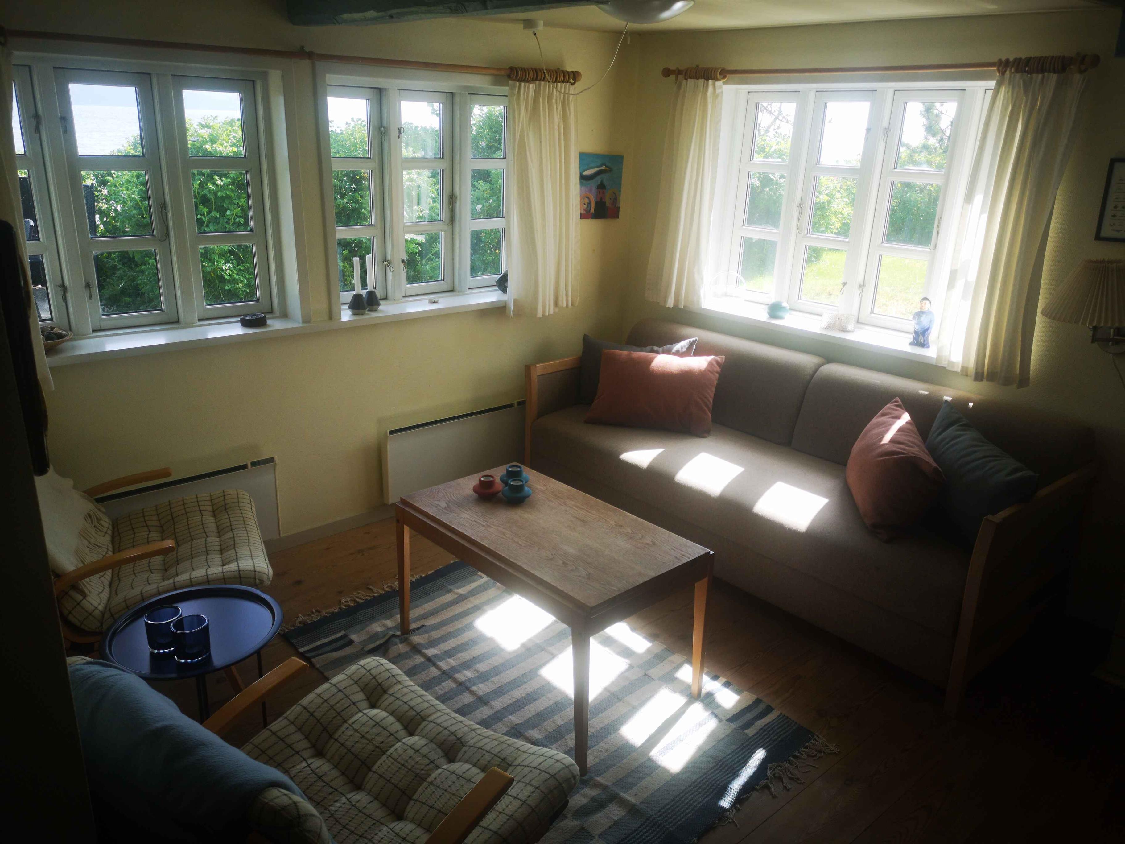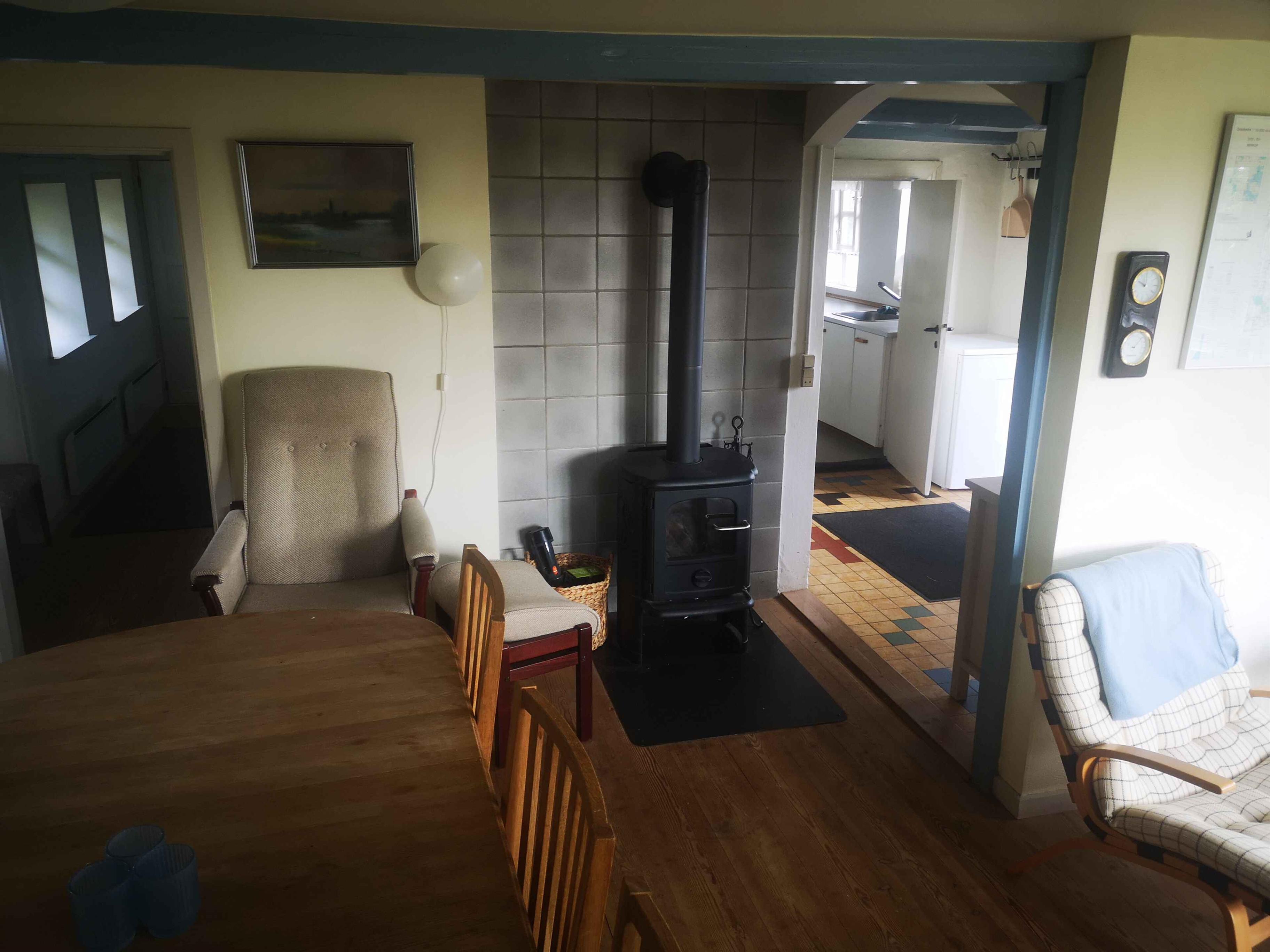 Romantiker, Fischer und andere mit dem Wunsch, einen Urlaub in einem gemütlichen, reetgedeckten Ferienhaus fast am Strand und mit fantastischem Blick auf den Vejle Fjord zu verbringen - hier ist die Chance! Hier gibt es kostenloses Internet, und Sie können auch gerne ein Haustier in den Urlaub mitbringen Das Haus wurde ursprünglich 1882 erbaut und wird ständig renoviert. Es gibt sowohl eine Elektroheizung als auch eine Wärmepumpe, sodass das Haus das ganze Jahr über beheizt werden kann. Das Wohnzimmer ist schön eingerichtet mit Holzofen. Es gibt einen Fernseher mit dänischen Kanälen und Chromecast, sodass Sie Ihre "eigenen Kanäle" sehen können. Hier ist auch ein Hochstuhl zur verfügung, im Fall sie ein kleines Kind dabei haben. Die Küche ist u.a. mit Mikrowelle und Minibackofen ausgestattet, und hier hat man durch die kleinen Lamellenfenster den schönsten Blick auf das Wasser. Hier können Sie die Seele baumeln lassen und sich (fast) beim Abwaschen entspannen. Das Haus hat 3 Schlafzimmern, von denen sich eines in einem Nebengebäude befindet. Ein Schlafzimmer hat ein Doppelbett. Das zweite Schlafzimmer hat ein Schlafsofa für 2 Personen und dann gibt es zwei Schlafplätze im Nebengebäude. Das Badezimmer ist mit Dusche, WC und Fußbodenheizung ausgestattet. Hier finden Sie auch eine Waschmaschine. Draußen gibt es die schönste, offene Terrasse mit Gartenmöbeln und mit vollem Blick auf den Strand und das Wasser. Es gibt Parkplätze für das Auto. Das Haus liegt ca. 20 km von Vejle entfernt, wo es gute Einkaufsmöglichkeiten und Gastronomie auf hohem Niveau gibt. Zu den Sehenswürdigkeiten in der Umgebung zählen: • Die Jelling-Denkmäler (UNESCO) aus der Zeit von Harald Blåtand in Vejle Ådal. • Givskud Zoo, der neben den vielen Tieren auch Dänemarks größte Dinosaurierausstellung mit über 50 lebensgroßen Dinosauriern bietet. • Das Kulturmuseum, das die Geschichte Dänemarks von Vejle aus von der Antike bis gestern erzählt. • Økolariet, ein spannendes Wissens- und Erlebniszentrum für Nachhaltigkeit, Natur, Umwelt, Energie und Klima. Es sind ungefähr 35 km nach Kolding, wo Sie u.a. Koldinghus besuchen können.