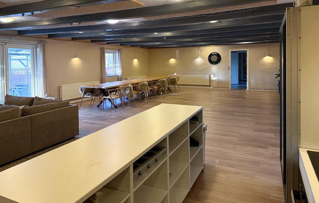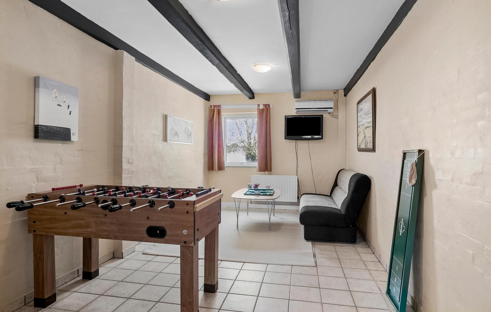 Verbringen Sie Ihren nächsten Urlaub in diesem geschmackvoll renovierten Flügel des Bøstrup Strandgård. Ihre geräumige Unterkunft bietet ideale Bedingungen für einen gemeinsamen Urlaub mit mehreren Generationen oder befreundeten Familien. Erleben Sie gesellige Tage auf dem Land, in einer Umgebung, die Ruhe, Weite und Nähe zum Meer vereint. Nutzen Sie den großen Aufenthaltsraum für gemeinsame Mahlzeiten oder gesellige Spieleabende. Entspannen Sie sich in der komfortablen Sofaecke oder ziehen Sie sich mit einem Buch zurück.