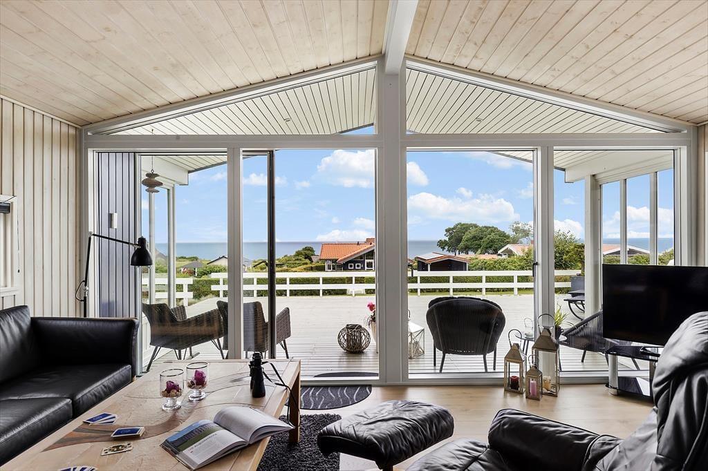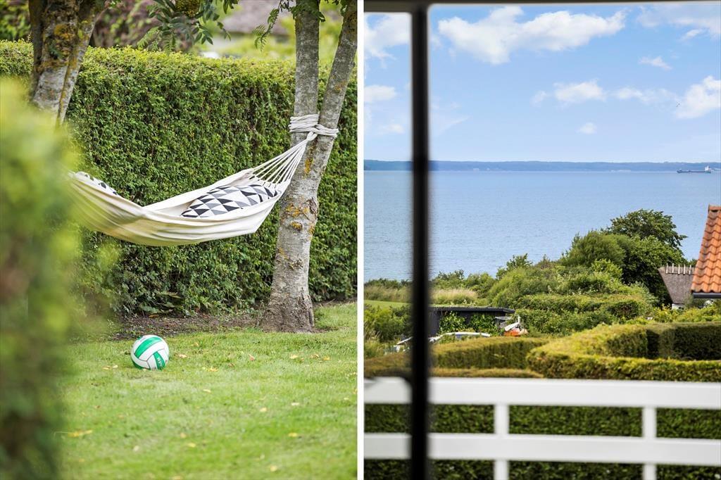Das Ferienhaus bietet einen großen Terrassenbereich mit einem fantastischen Panoramablick über den Kleinen Belt. Hier kannst du den Tag mit Sonnenbaden verbringen, Mahlzeiten unter freiem Himmel genießen oder einfach mit einem guten Buch entspannen. Die Treppe von der Terrasse führt dich in den schönen Garten, wo Kinder spielen können und du einen friedlichen Platz für eine ruhige Auszeit findest. Der Morgenkaffee schmeckt besonders gut mit dem Meerblick im Hintergrund, und die Abende werden magisch mit Grillessen und Sonnenuntergängen über dem Wasser.