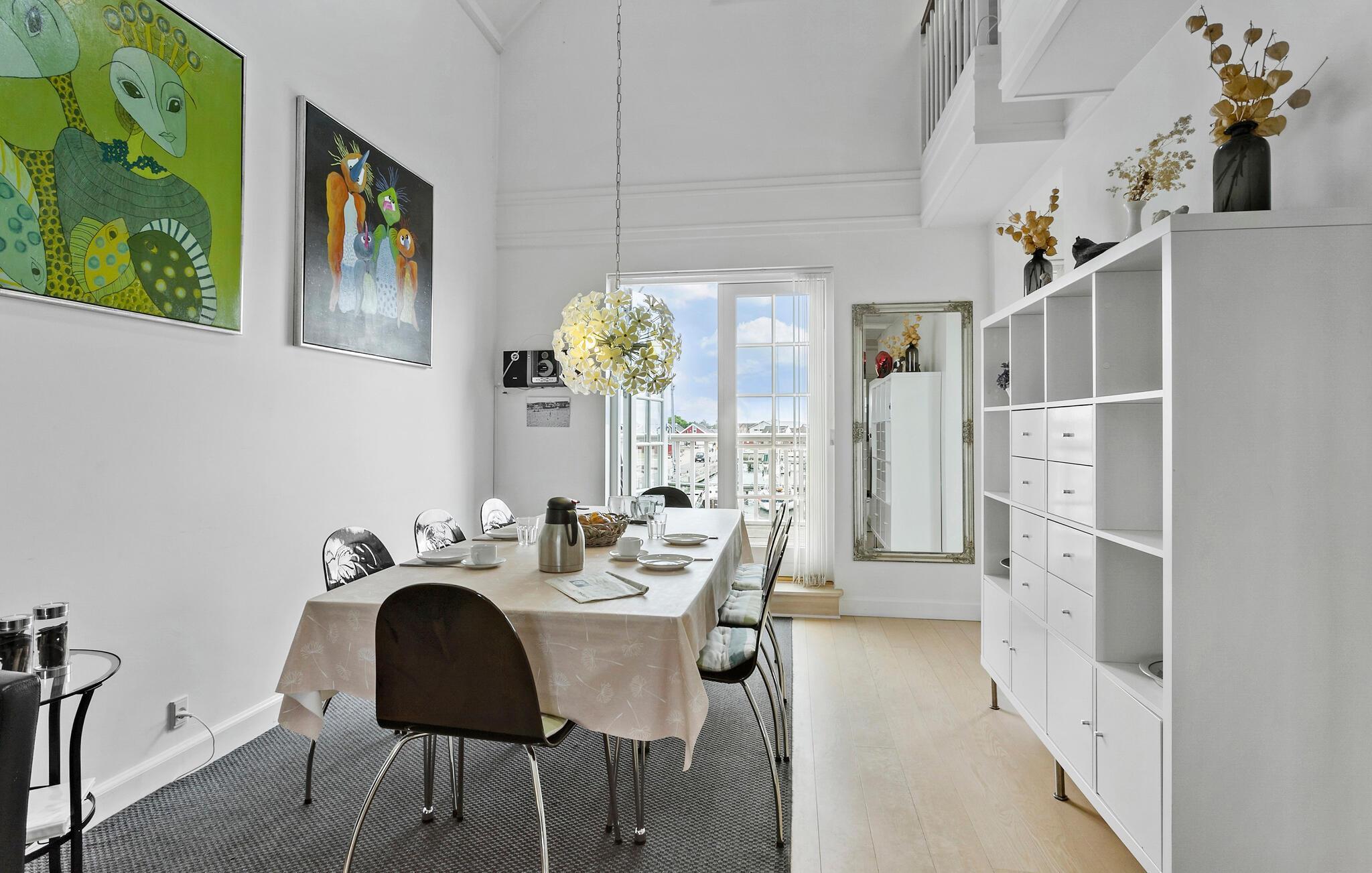 Die ruhige Lage am Hafen und das geschmackvolle Design bieten Ihnen eine einladende Atmosphäre und lassen Sie zur Ruhe kommen. Die hellen Räume sind hochwertige eingerichtet und verfügen über einen gemütlichen Holzofen, der für behagliche Abende sorgt. Farbenfrohe Kunst ziert die Wände und schafft ein Ambiente, dass Sie zum Entspannen auffordert. Die gut ausgestattete Küche und die stilvollen Wohnbereiche bieten Ihnen höchsten Komfort. Entspannen Sie in der Sauna oder der Whirlpool-Badewanne und lassen Sie Ihren hektischen Alltag hinter sich.