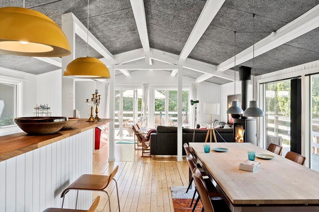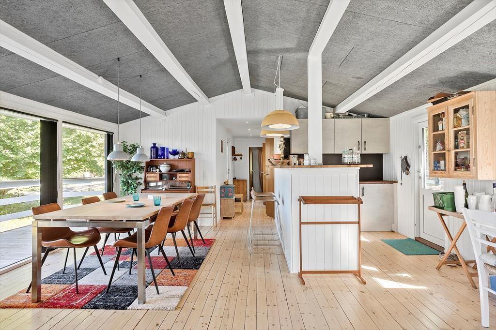 Sie betreten das Ferienhaus direkt durch die Küche, von der Sie weiter in den offenen Wohnraum gelangen. Die Küche beinhaltet unter anderem einen Geschirrspüler, eine Mikrowelle, 4 Cerankochplatten, einen Backofen, eine Kaffeemaschine und einen Wasserkocher.