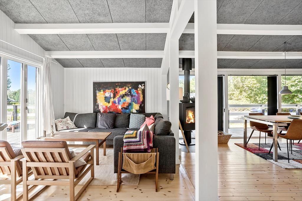 Schönes, neueres helles und einladendes Ferienhaus in Bakkebølle mit Terrasse auf drei Seiten. In diesem Haus ist Platz zum Erholen und Entspannen.