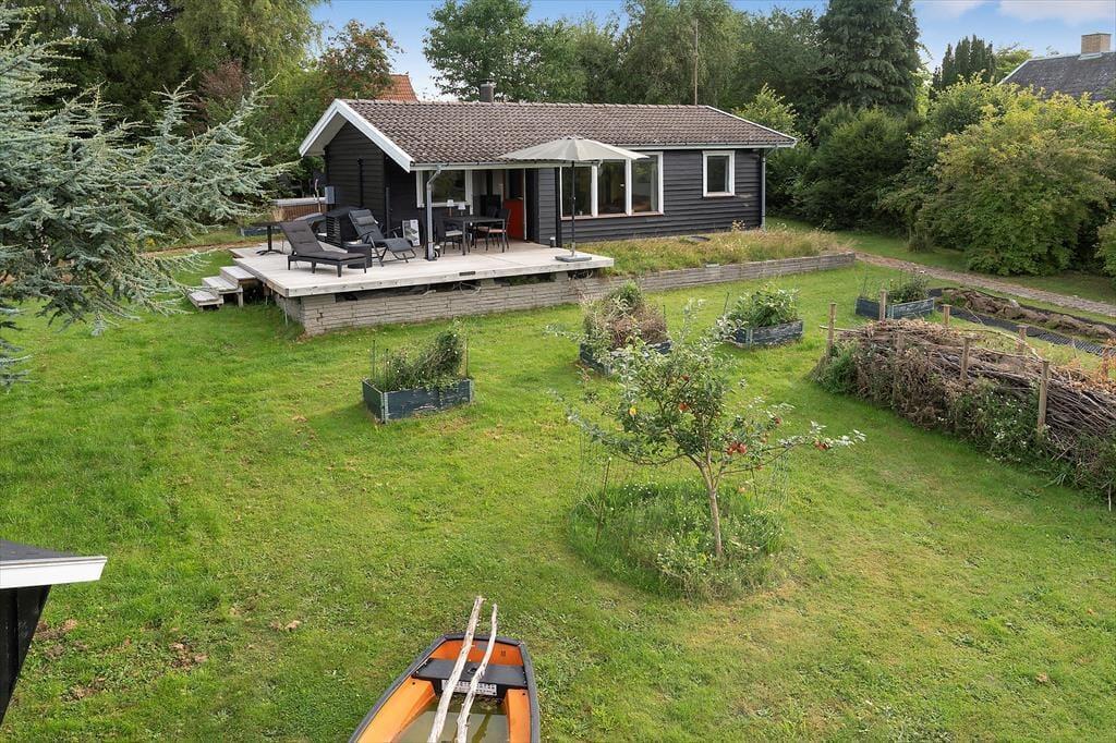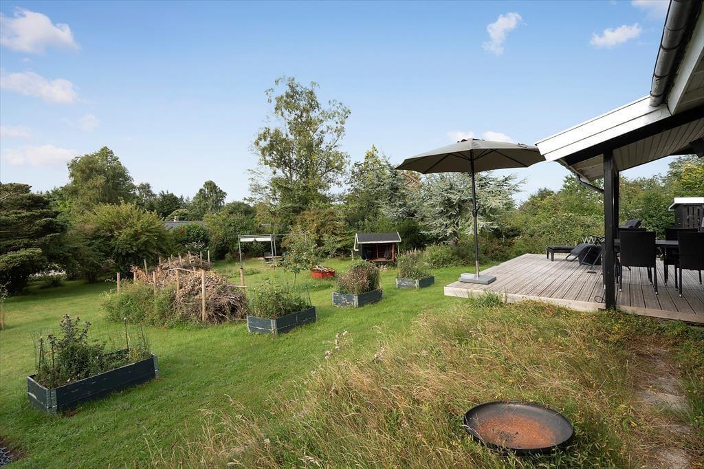 Das Ferienhaus liegt auf einem schönen Grundstück mit einem schönen, teilweise umzäunten Naturgarten. An einer Seite des Hauses befindet sich eine schöne, teilweise überdachte Holzterrasse, an der Rückseite eine geflieste Terrasse, sodass Sie tagsüber die Sonne um das Haus herum genießen können. Die Kinder können auf dem Rasen spielen, während Sie Ihren Kaffee auf der Terrasse genießen. Im Garten befindet sich ein Schutzhaus, sodass Sie im Freien übernachten können.
