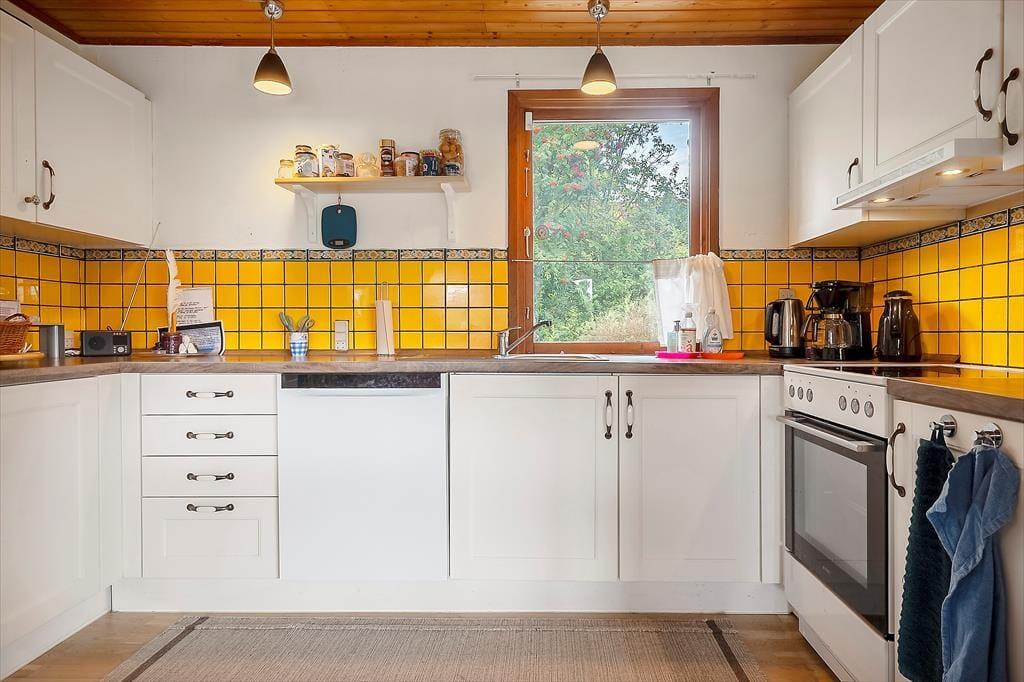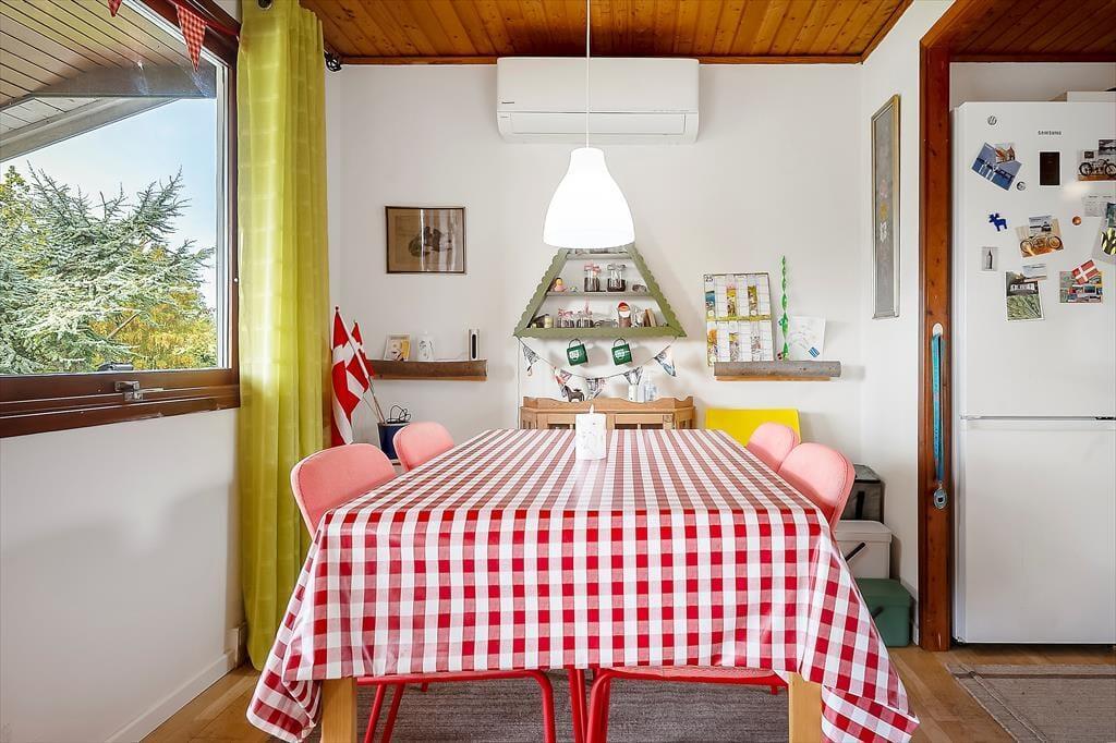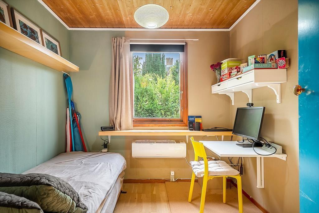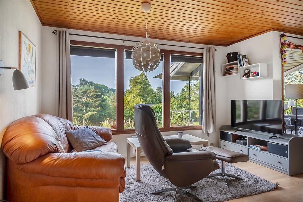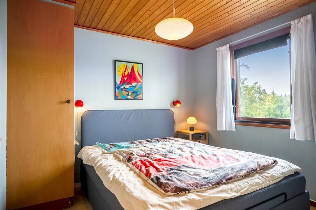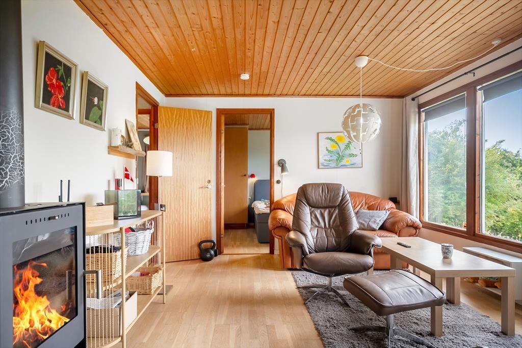 Hier können Sie Ihren Geschäften nachgehen und die Natur genießen. Das Haus verfügt über eine offene Wohnküche. Hier können Sie gemeinsam kochen und gleichzeitig die Ausflüge für den nächsten Tag planen. Die Kinder können fernsehen, und an kalten Tagen können Sie den Holzofen anheizen. Es gibt zwei Schlafzimmer, eines mit Doppelbett und eines mit einem Doppelschlafsofa. Hier können Sie sich gut zurückziehen und ein gutes Buch lesen oder ein Nickerchen machen. Das Badezimmer verfügt über Toilette, Waschbecken und Dusche. Das Haus wird mit einer Wärmepumpe und einem Holzofen beheizt. Vom Wohnzimmer aus gelangen Sie auf die schöne, hoch gelegene Holzterrasse.