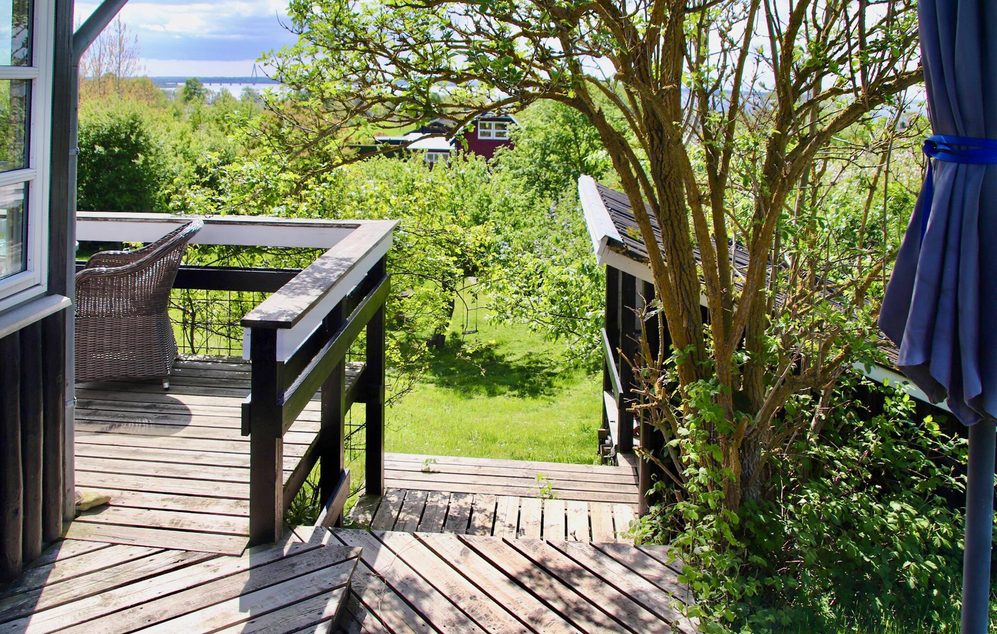 Modernisiertes norwegisches Holzferienhaus mit Meerblick, Kamin und großem Naturgrundstück nahe Strand in Dänemark.