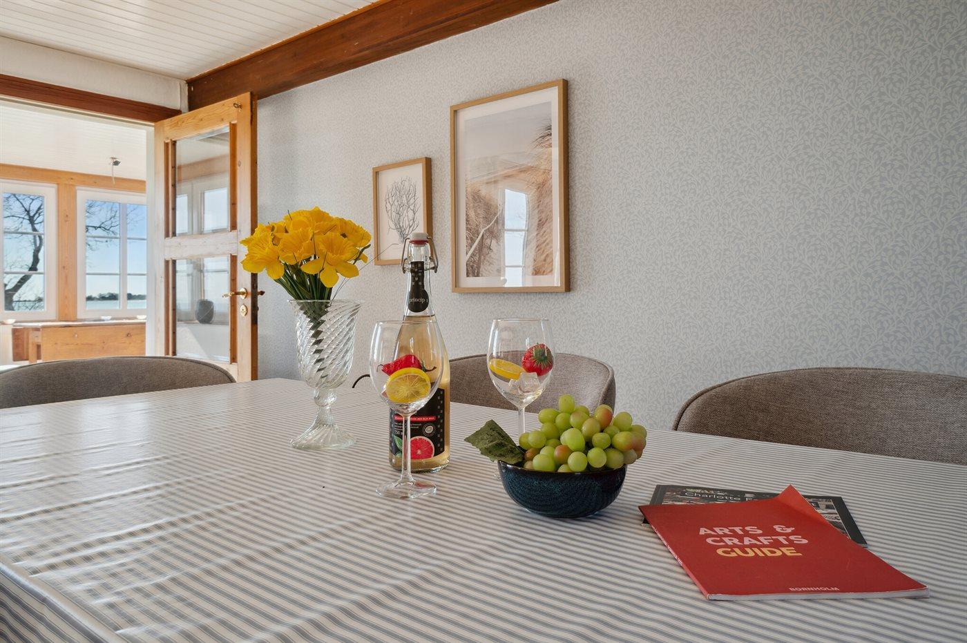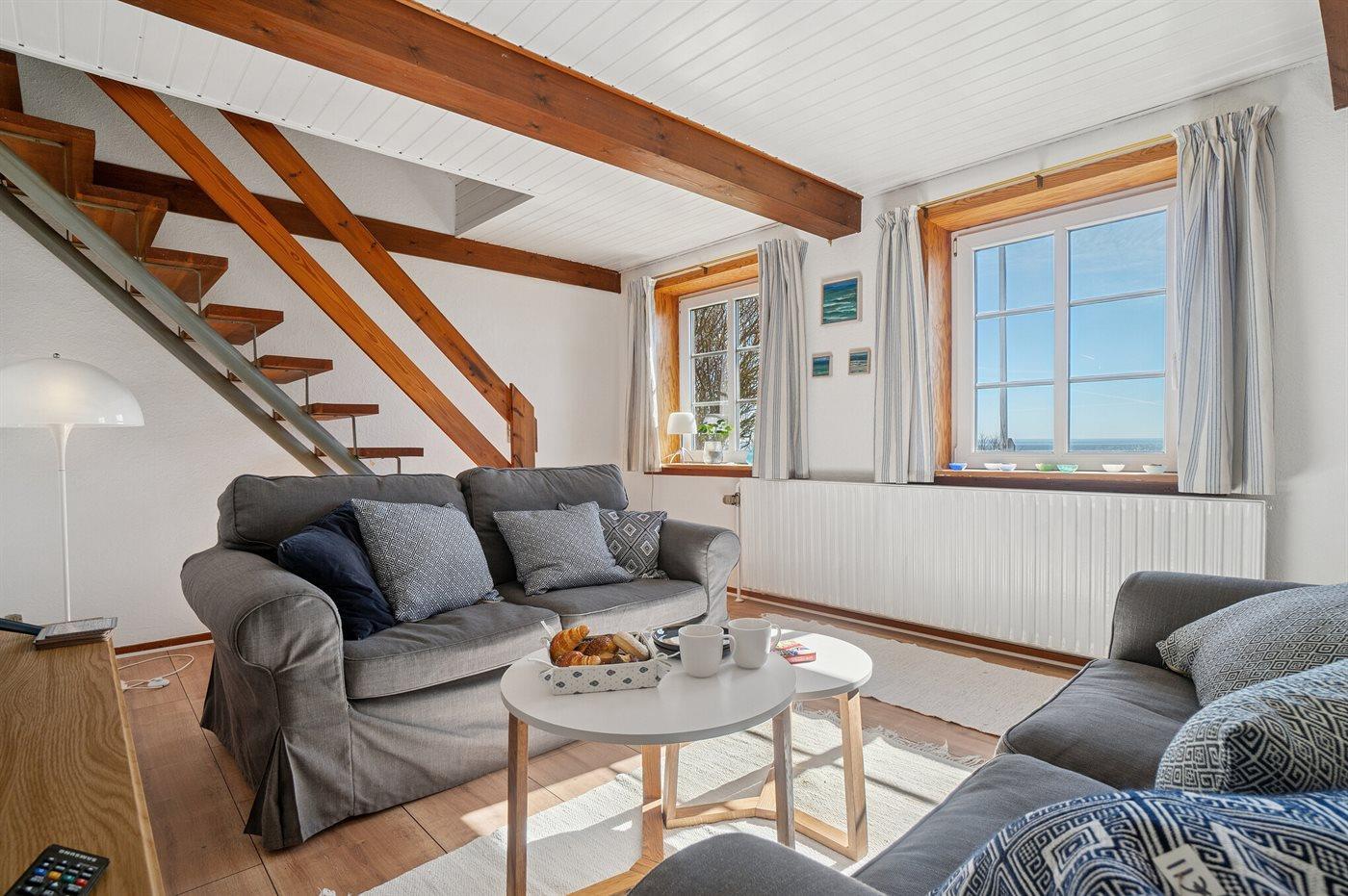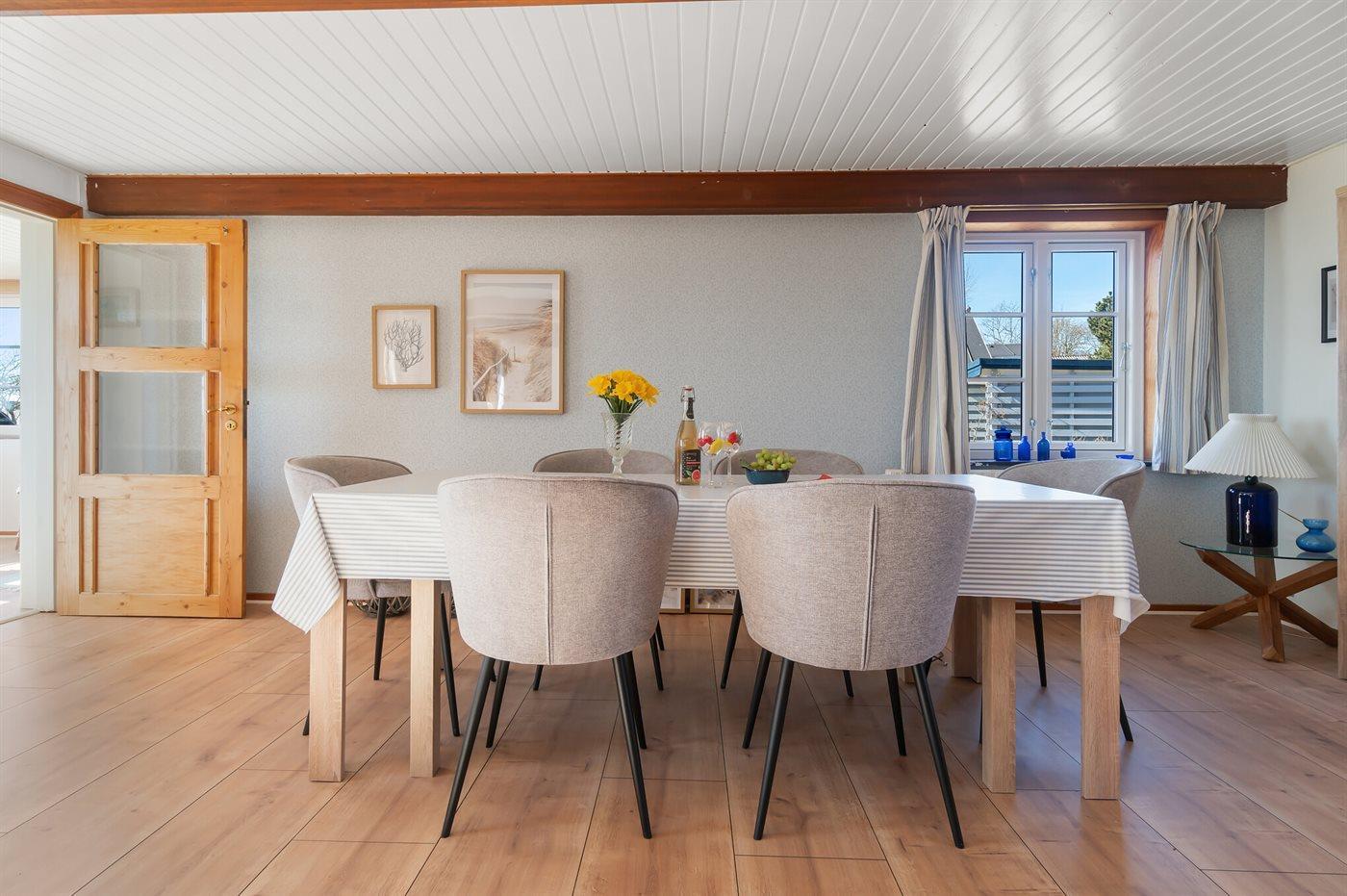 Das Ferienhaus erstreckt sich über zwei Etagen – mit zwei Schlafzimmern im Obergeschoss. Im Jahr 2025 wird das Haus teilweise modernisiert, einschließlich neuer Bodenbeläge im Wohnzimmer und im gemütlichen Wintergarten, von dem aus man das Geschehen auf dem Meer durch die Fenster beobachten kann. Das Grundstück ist großzügig und in verschiedene Bereiche mit ungestörten Ecken und Winkeln unterteilt, in denen man den Lauf der Sonne genießen kann. Auf der großen überdachten Terrasse neben dem Carport steht eine Tischtennisplatte. Eine größere Innenhofterrasse mit Gartenmöbeln ist durch Ziegelwände gut abgeschirmt und bietet Schutz, wenn der Wind weht.