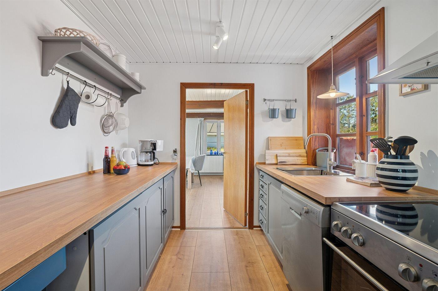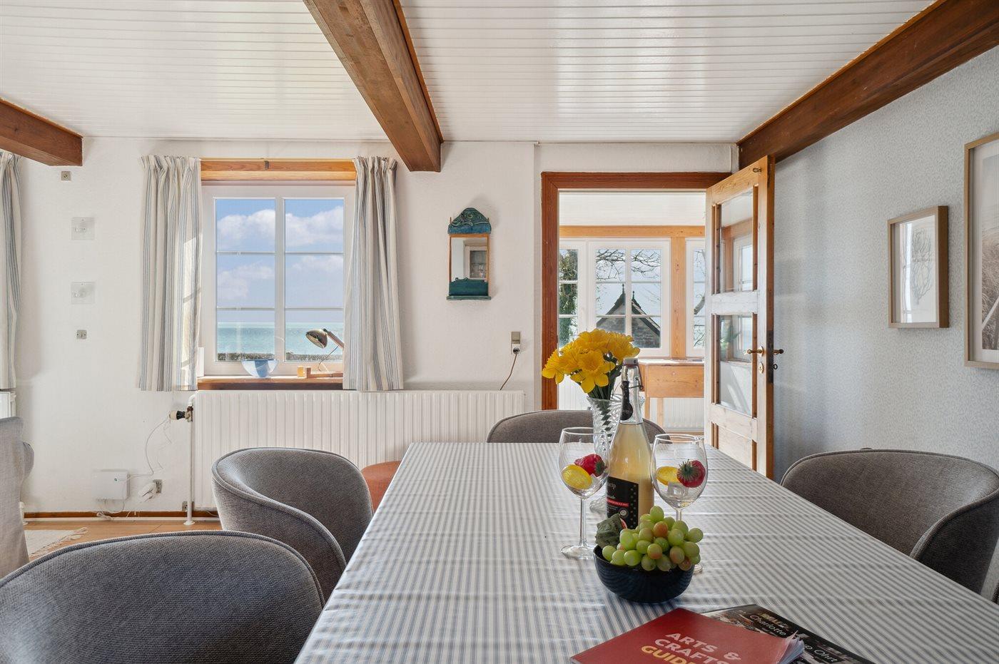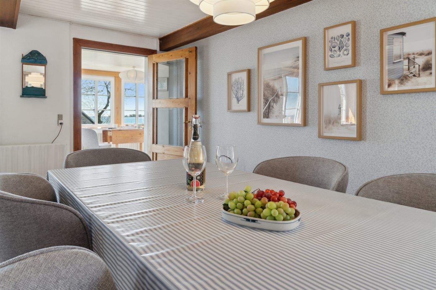 Das Ferienhaus erstreckt sich über zwei Etagen – mit zwei Schlafzimmern im Obergeschoss. Im Jahr 2025 wird das Haus teilweise modernisiert, einschließlich neuer Bodenbeläge im Wohnzimmer und im gemütlichen Wintergarten, von dem aus man das Geschehen auf dem Meer durch die Fenster beobachten kann. Das Grundstück ist großzügig und in verschiedene Bereiche mit ungestörten Ecken und Winkeln unterteilt, in denen man den Lauf der Sonne genießen kann. Auf der großen überdachten Terrasse neben dem Carport steht eine Tischtennisplatte. Eine größere Innenhofterrasse mit Gartenmöbeln ist durch Ziegelwände gut abgeschirmt und bietet Schutz, wenn der Wind weht.