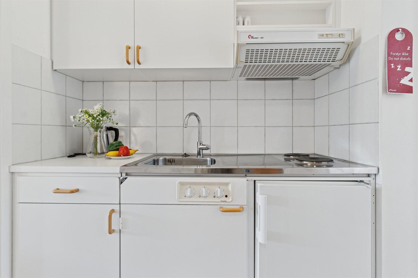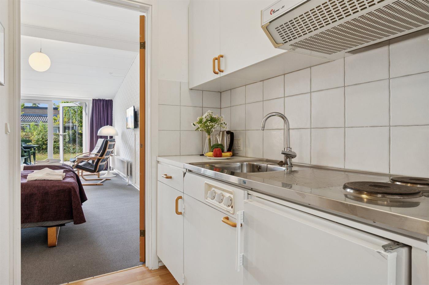 Die Küche ist mit Kühlschrank ausgestattet. Außerdem gibt es 2 elektrische Kochplatten.