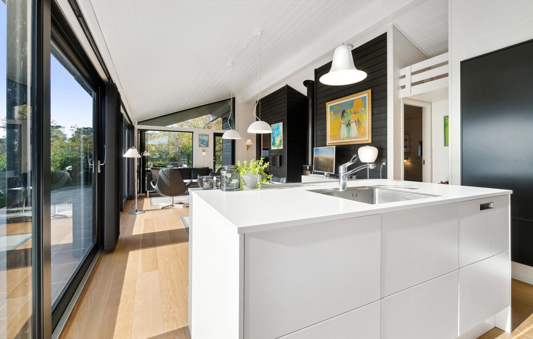 Ihr elegantes und stilvolles Ferienhaus bietet Ihnen alles, was einen Urlaub unvergesslich macht. Beginnen Sie Ihren Tag mit einer warmen Tasse Kaffee und bereiten Sie in der modernen, offenen Küche ein köstliches Frühstück für Ihre Lieben vor. Am einladenden Esstisch findet die ganze Familie Platz und kann die wunderschöne Panaromaaussicht auf das Meer, das quasi direkt hinter den großen Fenstern liegt, genießen. Auch die Sofaecke verspricht eine gemütliche Zeit. Tauchen Sie in die Seiten eines guten Buches ein oder spielen Sie gemeinsam mit Ihren Kindern lustige Gesellschaftsspiele. Auf der Terrasse sollten Sie einmal ganz tief durchatmen und dabei den Blick schweifen lassen. Der Terrassentisch lädt zum Verweilen und zu leckeren Grillabenden ein.