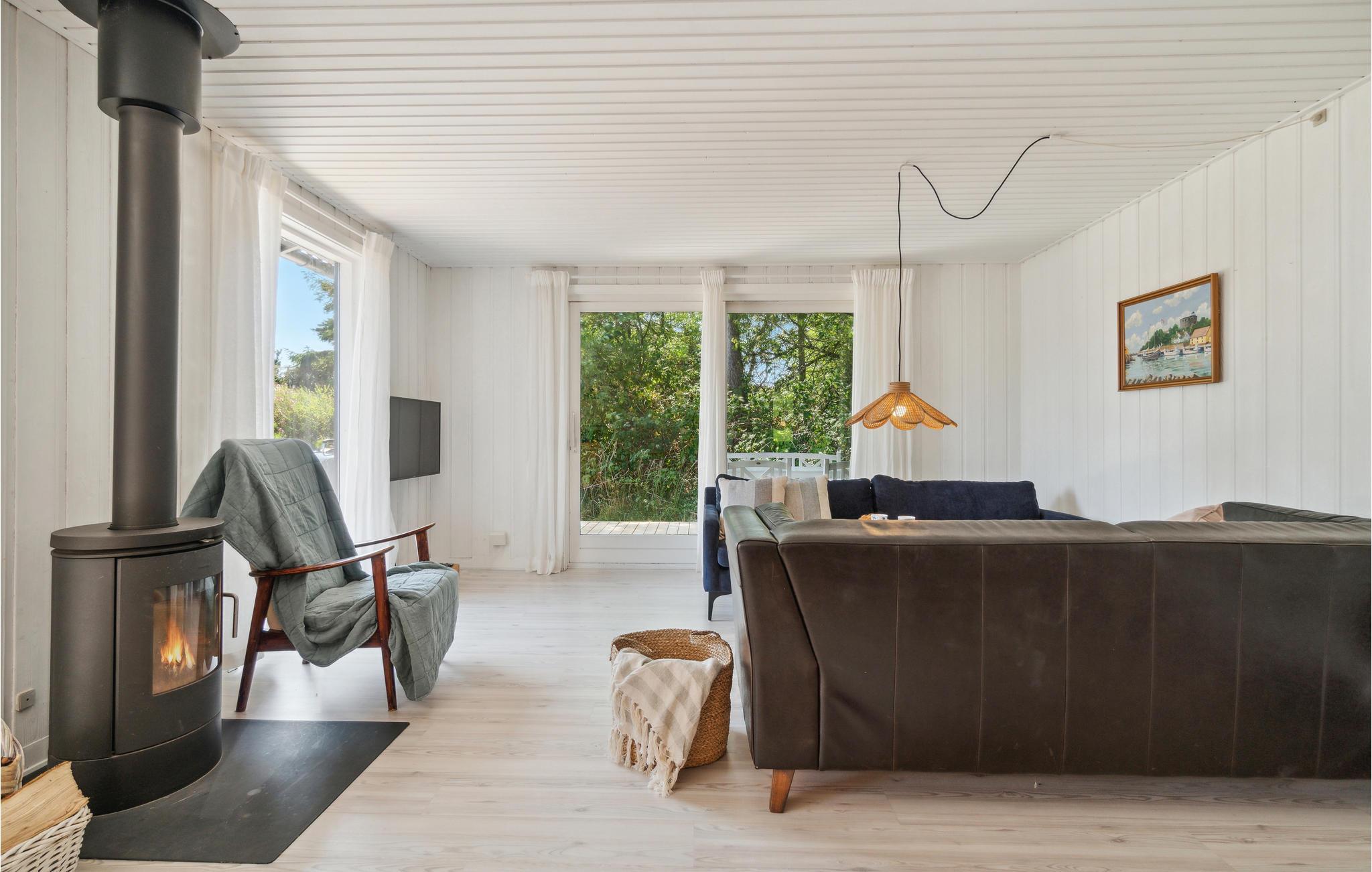 Das komfortable Haus empfängt Sie in traumhafter Lage für Strandvergnügen und unvergessliche Naturerlebnisse in unmittelbarer Nähe zum Strand. Machen Sie es sich mit Ihren Lieben in den hellen Räumen mit charmanter Retro-Note gemütlich. Gleich beim Aufwachen können Sie hier einen schönen Blick ins Freie genießen. Entspannen Sie nach Ihren Ausflügen in der Sauna. Bequeme Sofas laden zu geselligen Abenden ein, machen Sie es sich am leise bullernden Kaminofen gemütlich.