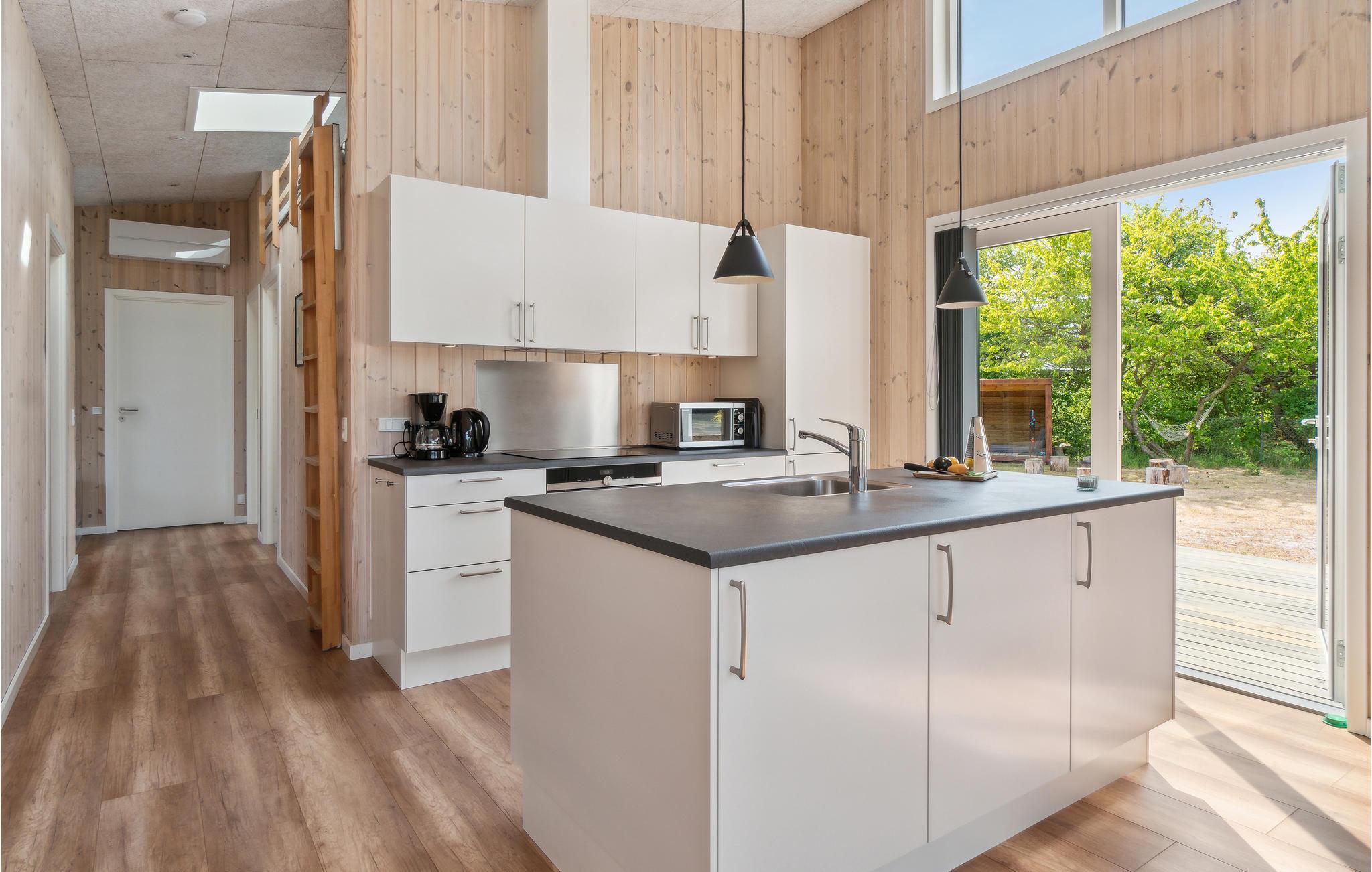 Bekannt für seinen wunderschönen und familienfreundlichen Sandstrand bietet Balka und dieses wunderschöne Ferienhaus Ihnen die idealen Bedingungen für Ihren Familienurlaub auf der Insel Bornholm. Schon ab Betreten des Hauses werden Sie sich hier wie zuhause fühlen. Die heimelige Atmosphäre, die Holzverkleidung der Wände und die gemütlichen Möbel tragen alle zum tollen Wohlerlebnis bei. Fordern Sie sich zu Brettspielen am Esstisch heraus und genießen an kühleren Tagen ein knisterndes Kaminfeuer. Treten Sie vom Wohnraum auf die teilweise überdachte Terrasse. Hier finden Sie schöne Winkel und Ecken, um Ihre Mahlzeiten und die Sonne im Freien zu genießen. Während Ihre Kinder am Tag im Garten umhertollen können, können Sie sich Abend gemeinsam um die Feuerschale versammeln und sogar die Nacht im komfortablen Shelter übernachten.