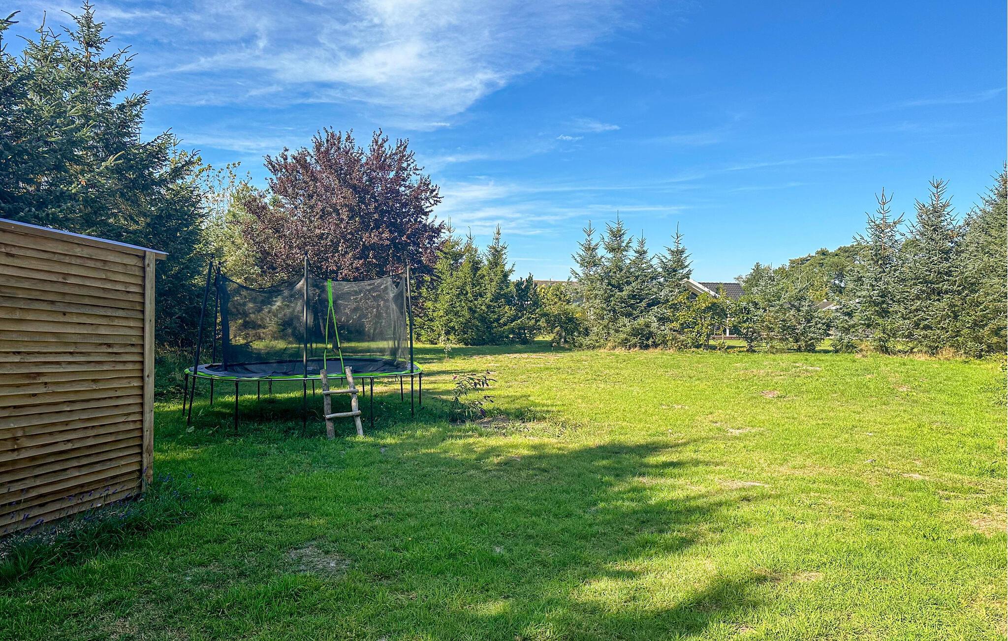 Nehmen Sie Platz an der kleinen Sitzgruppe auf der Holzterrasse und genießen Sie die ruhige Atmosphäre. Das Grundstück bietet ausreichend Platz zum Spielen und Entspannen, und die umliegenden Bäume schaffen eine natürliche, geschützte Umgebung. Kinder werden sich über das Trampolin im Garten freuen.