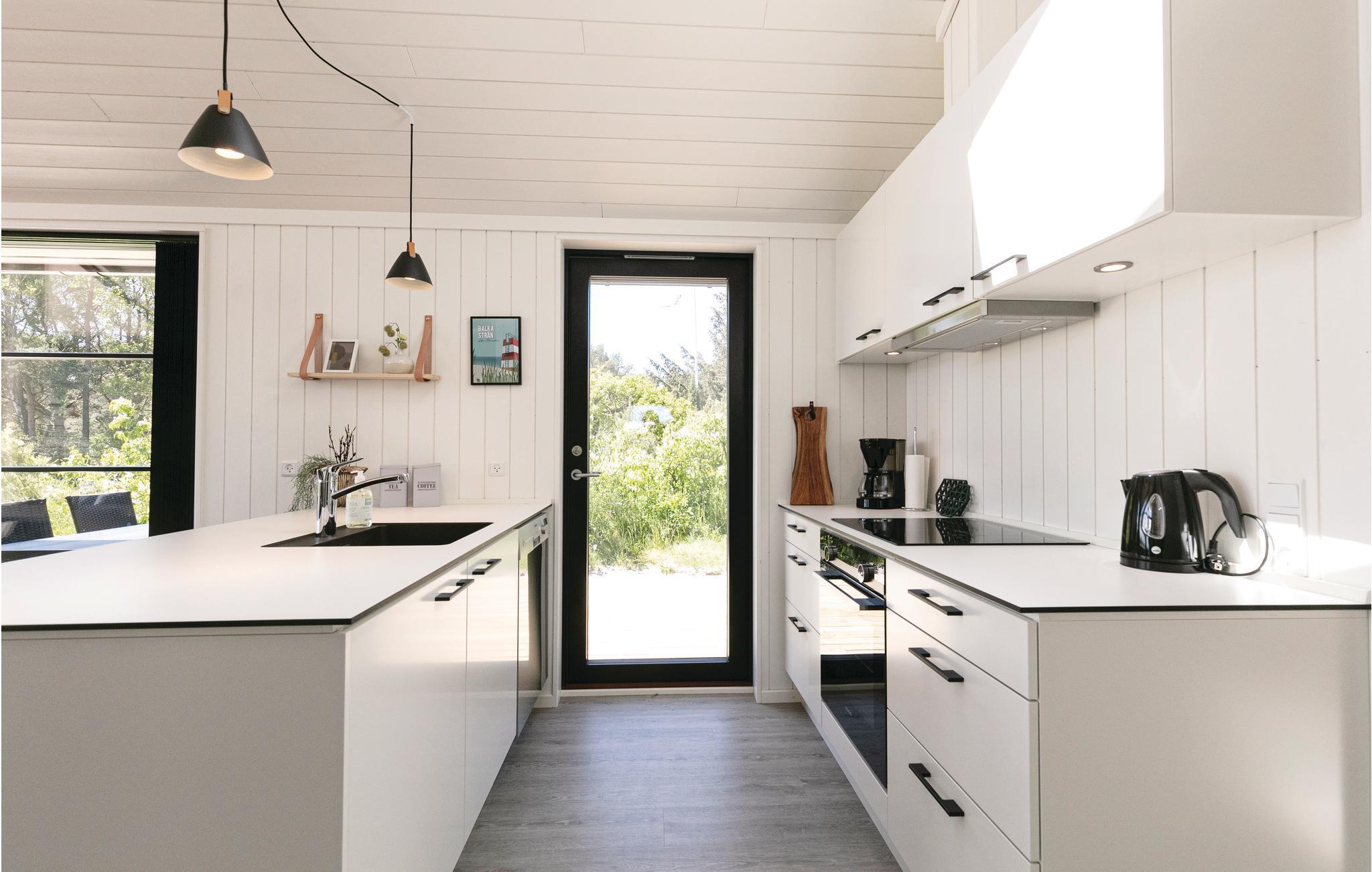 In erster Reihe an einem kinderfreundlichen Sandstrand und mit Meeresblick liegt dieser Neubau mit moderner Einrichtung und tollem Lichteinfall. Hier wohnen Sie komfortabel und in einzigartiger Lage, so nah am Meer, so dass ein schneller Sprung ins Wasser immer möglich ist. Im Innenbereich erwartet Sie ein sehr gut eingerichtetes Ferienhaus, wo großer Wert auf Qualität und Gemütlichkeit gelegt wurde. Die Küche ist geräumig und offen. Ess- und Wohnzimmer sind miteinander kombiniert und mit komfortablen, modernen Möbeln eingerichtet. Ein Kaminofen spendet gemütliche Wärme und außerdem gibt es eine Wärmepumpe. Das Internet ist kostenlos. Auf der großflächigen Terrasse gibt es ausreichend Möglichkeit für Entspannung und Urlaubsspaß. Im Garten steht eine Dusche, um sich nach einem Badegang das Salzwasser vom Körper oder den Sand von den Füßen zu spülen. Spazieren oder laufen Sie am Strand, oder besuchen Sie den Fischerort Snogebæk mit einer Räucherei und schönen Geschäften und Restaurants.