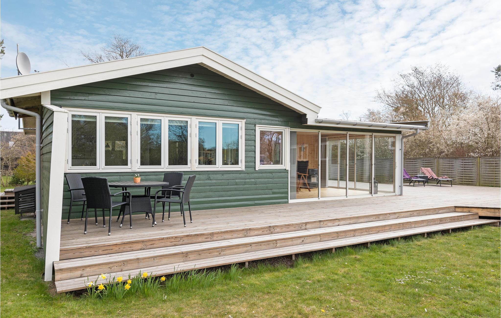 Gemütliches Holzhaus mit großer Terrasse und Garten nahe dem Sandstrand auf Bornholm.