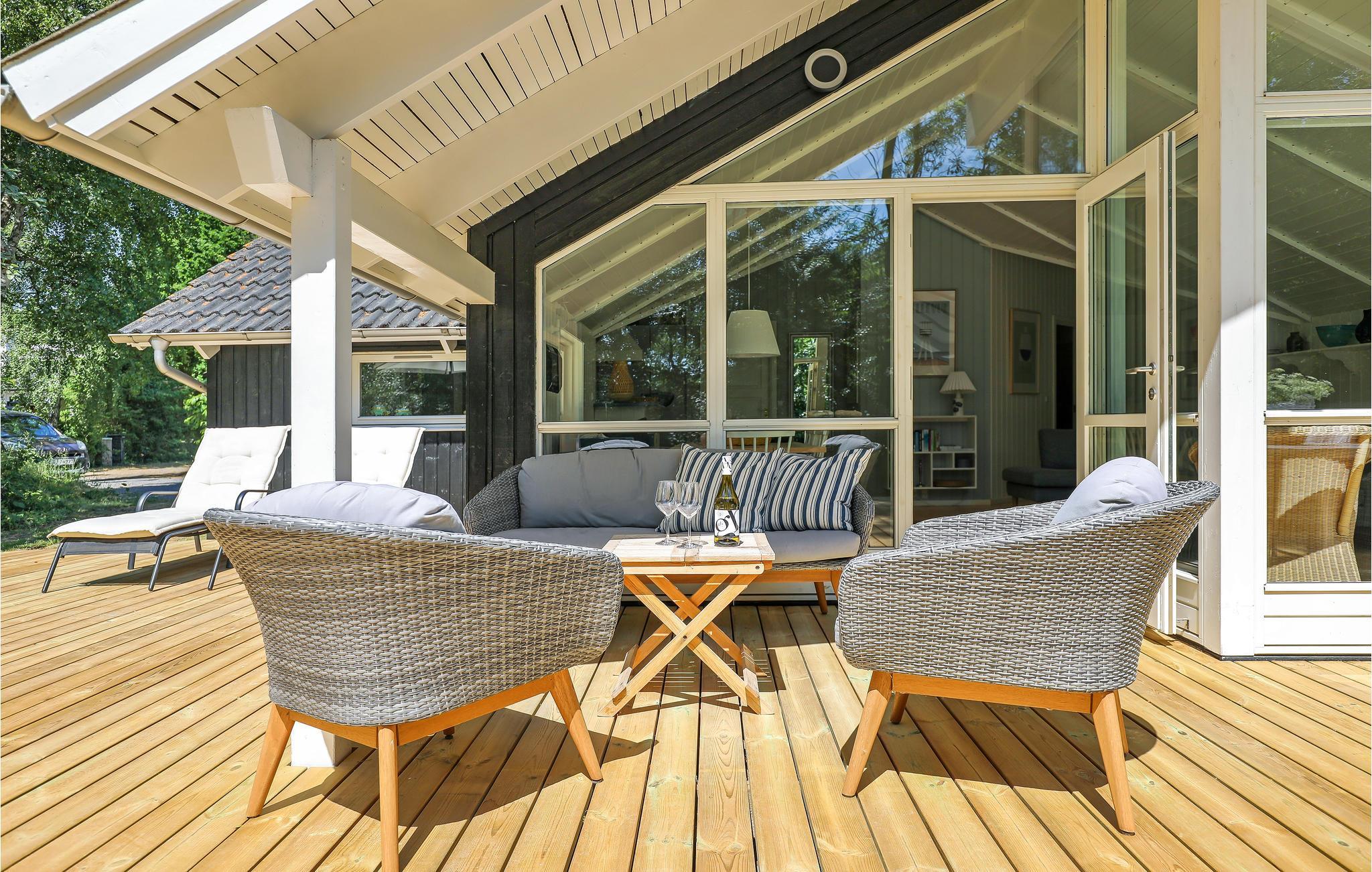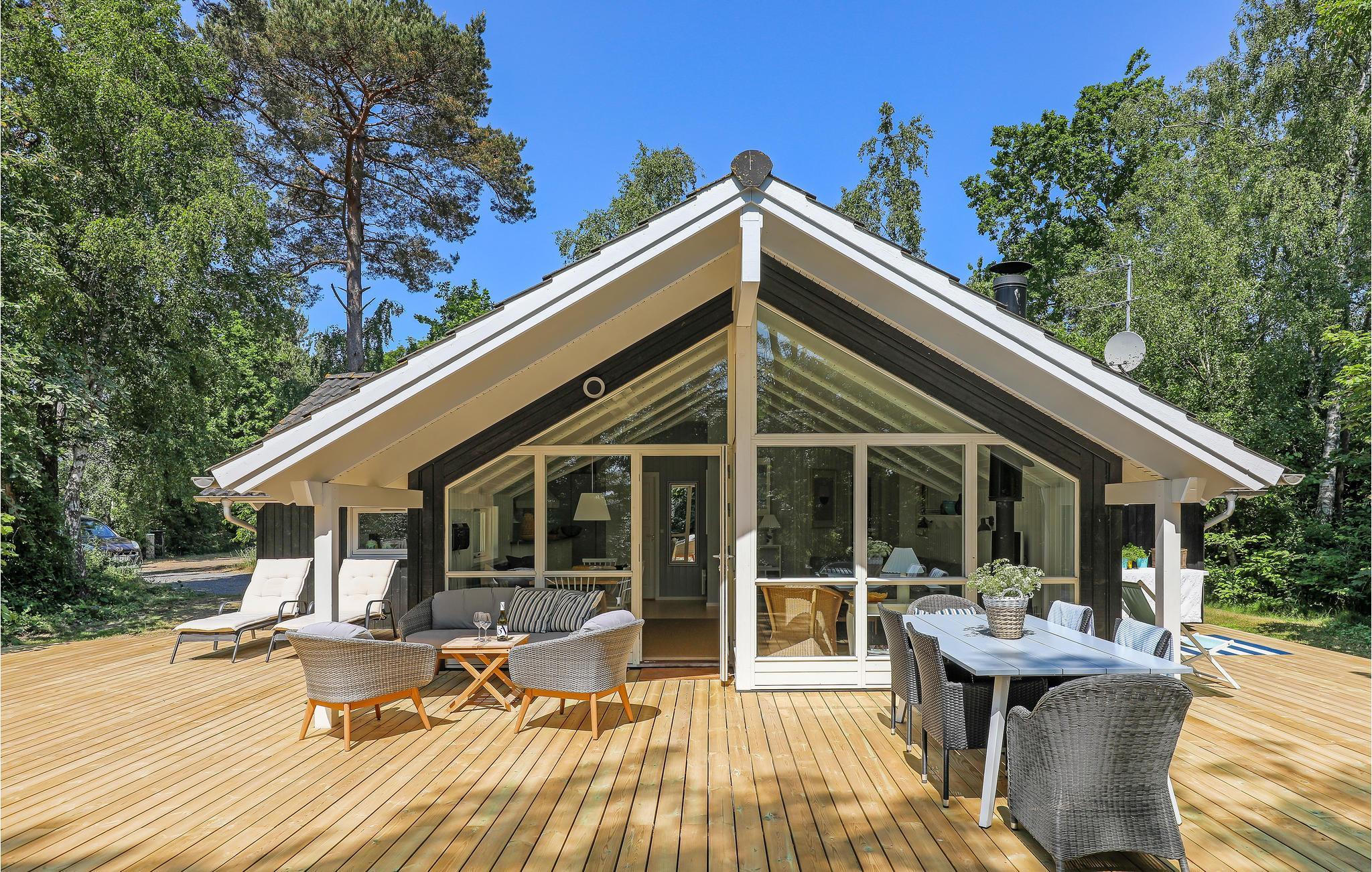 Modernes Ferienhaus nahe dem Strand von Bornholm mit Sauna, Whirlpool und offener Terrasse, ideal für entspannte Urlaubstage.