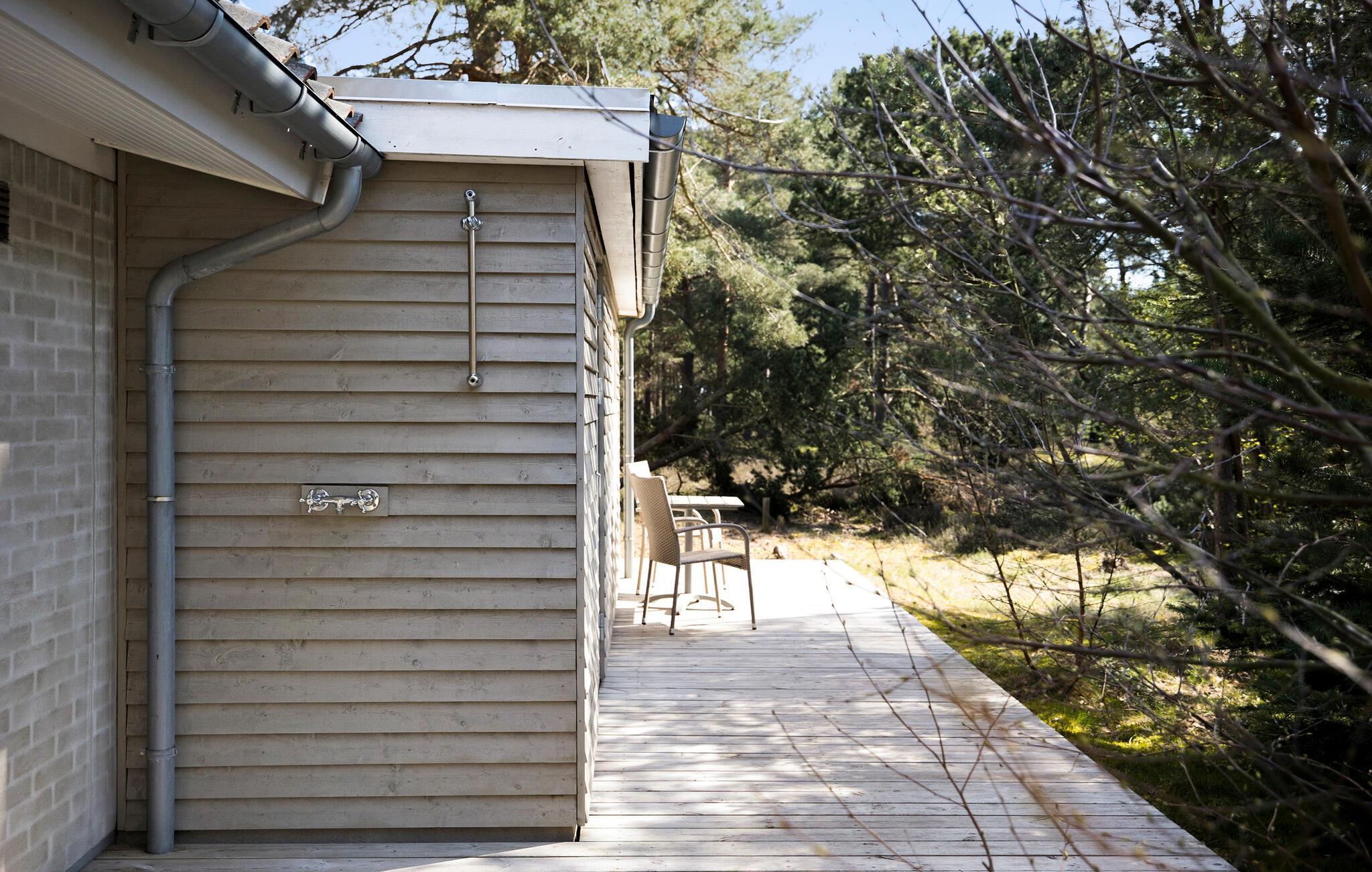 Bei schönem Wetter können Sie sich auf die große Terrasse mit Gartenmöbeln und Grill entspannen, wo Sie sowohl Sonne als auch Schatten finden. Um das Haus herum gibt es ein schönes Grundstück, auf dem Sie dem Vogelgezwitscher lauschen und die Ruhe genießen können. Auch für viele Tagesausflüge an den Strand wird wahrscheinlich Zeit, und wenn Sie wieder auf dem Grundstück sind, können Sie einfach und bequem die Außendusche benutzen.