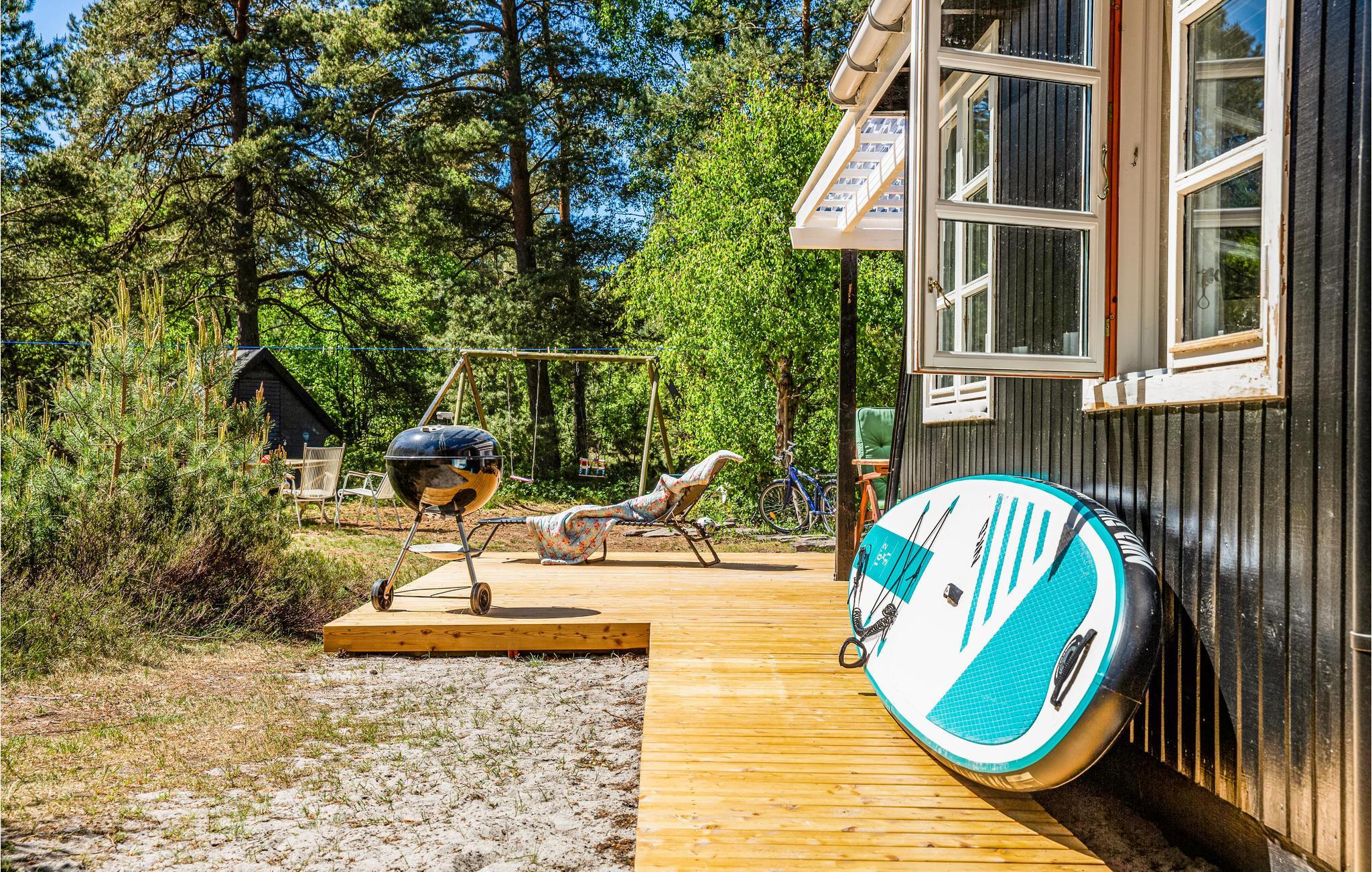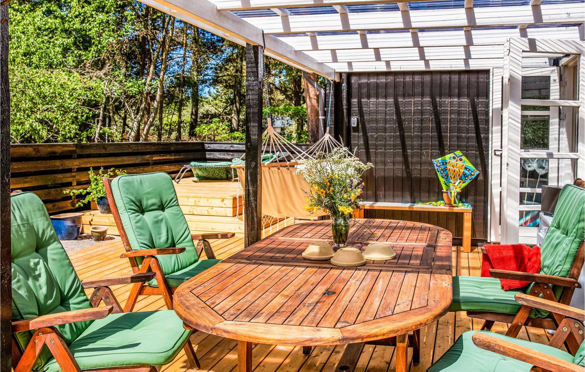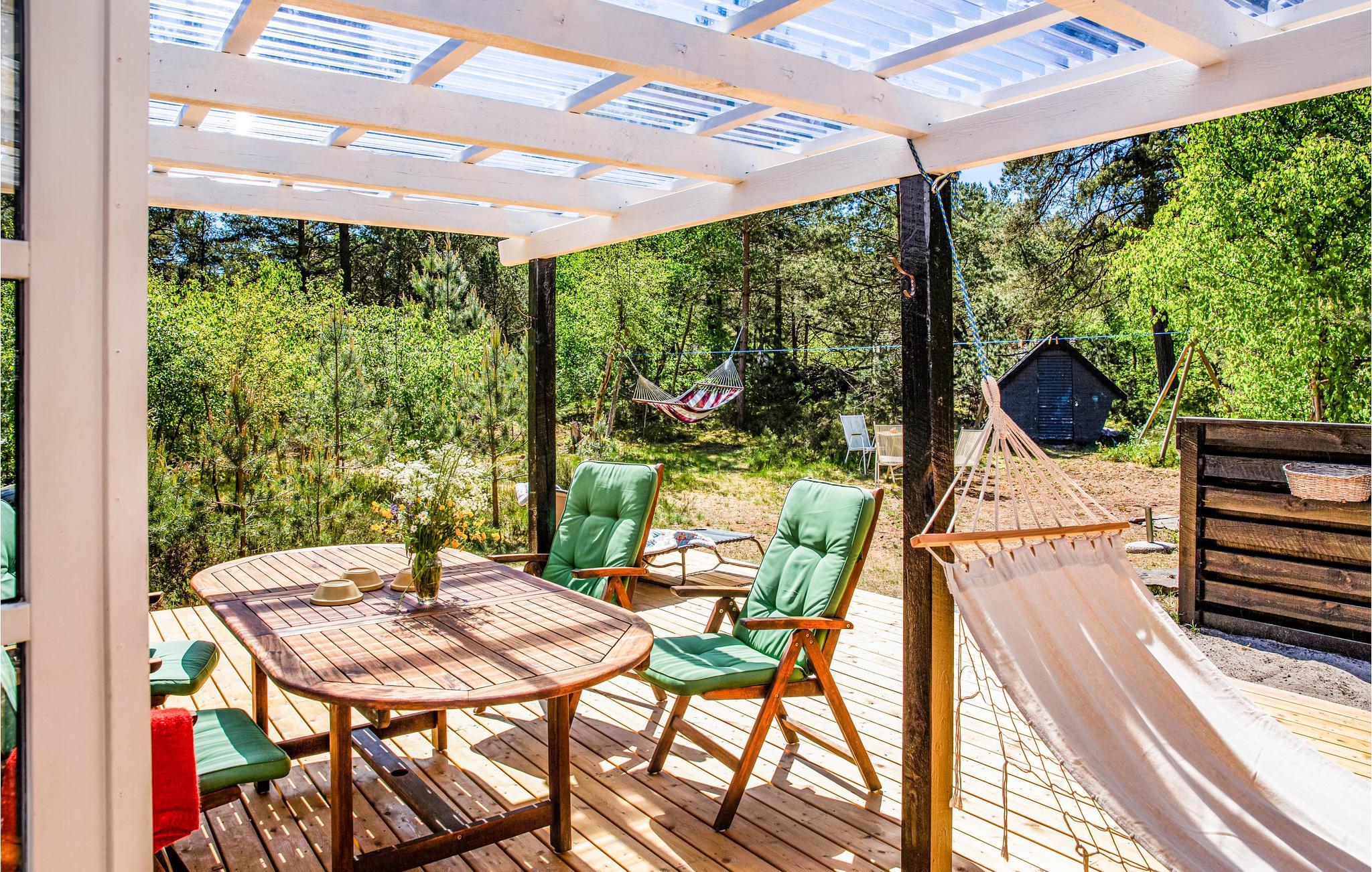 Bei schönem Wetter können Sie die Gesellschaft auf die große Terrasse mit Gartenmöbeln und Grill verlegen, wo Sie sowohl Sonne als auch Schatten finden. Um das Haus herum gibt es ein schönes Grundstück, auf dem Sie dem Vogelgezwitscher lauschen und die Ruhe genießen können. Die Kinder können im Spielhaus einen kleinen netten Laden einrichten oder sich an der Schaukel oder am Kletterseil vergnügen.