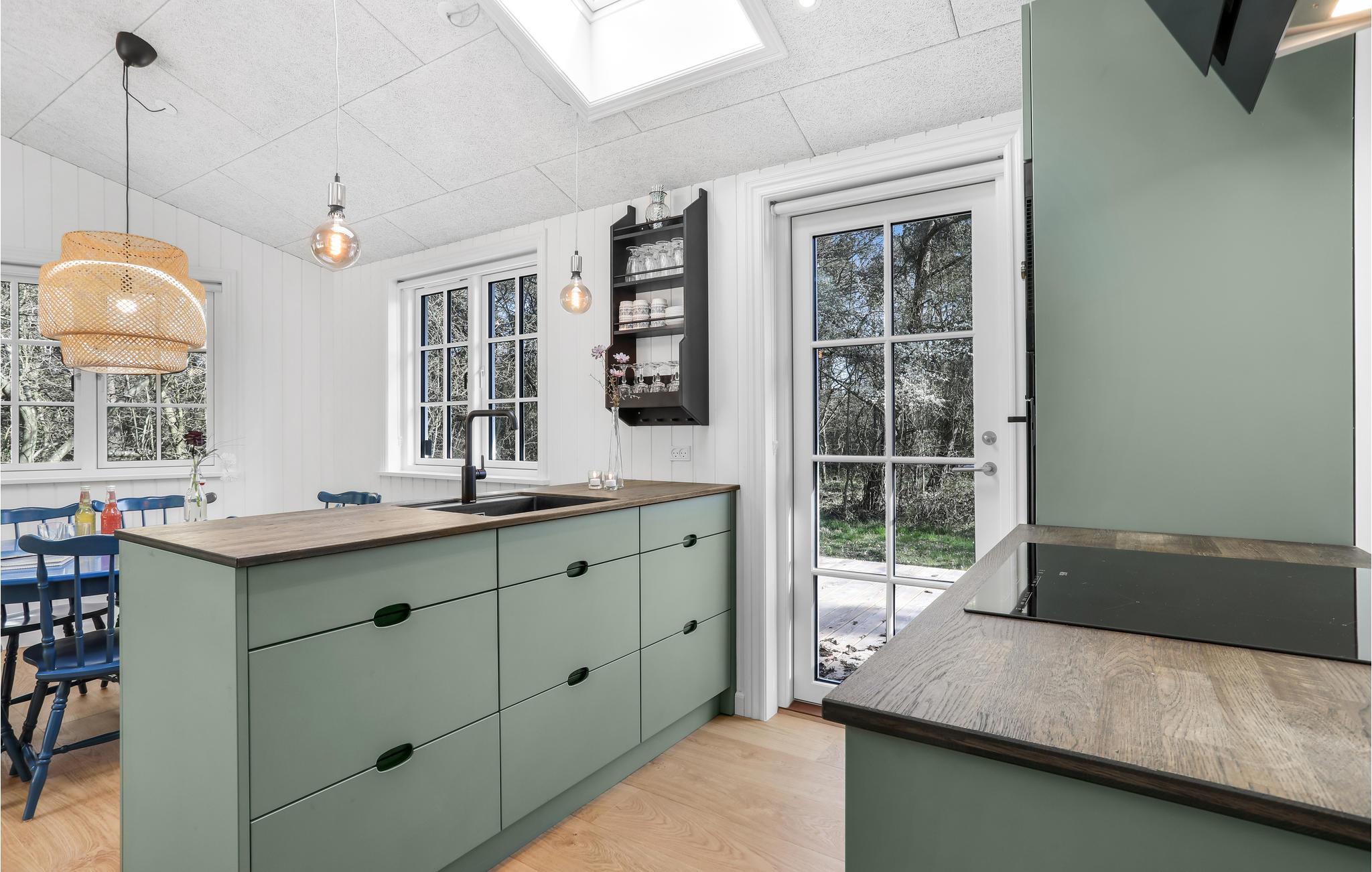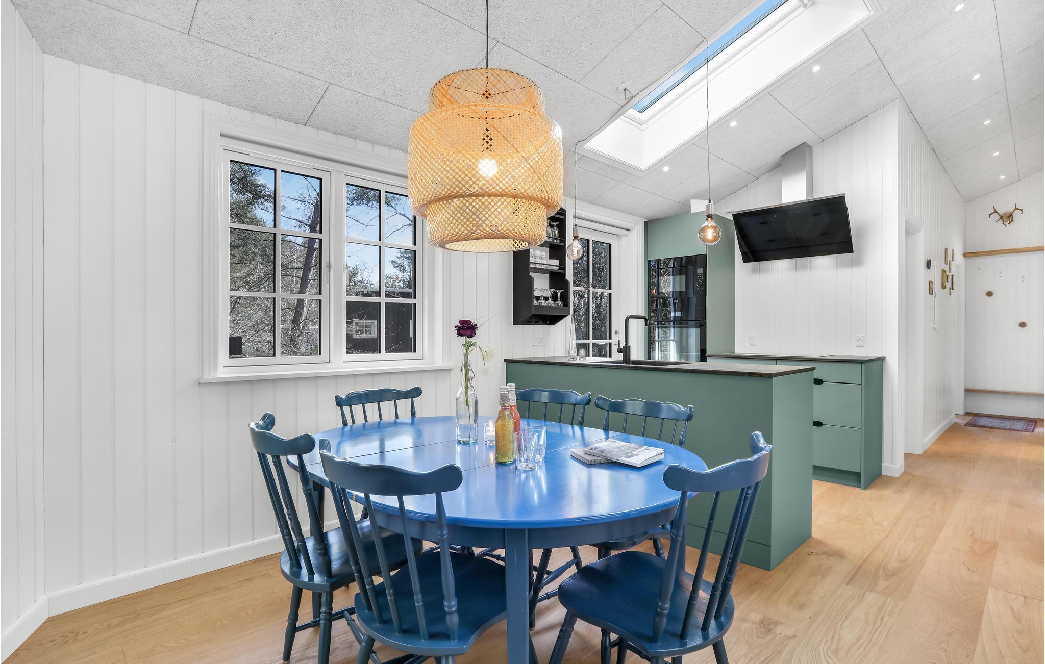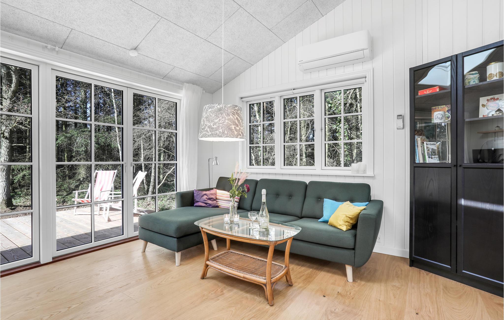 In schöner, bewaldeter Umgebung erwartet Sie dieses Holzhaus in einer angenehmen Atmosphäre. Es ist in hellen Farben gehalten und modern ausgesstattet, so dass Ihnen nichts fehlen wird. Nehmen Sie sich die Zeit fürs Kochen in der offenen Küche und verbringen Sie entspannte Stunden im Sofa mit Blick in den Garten.