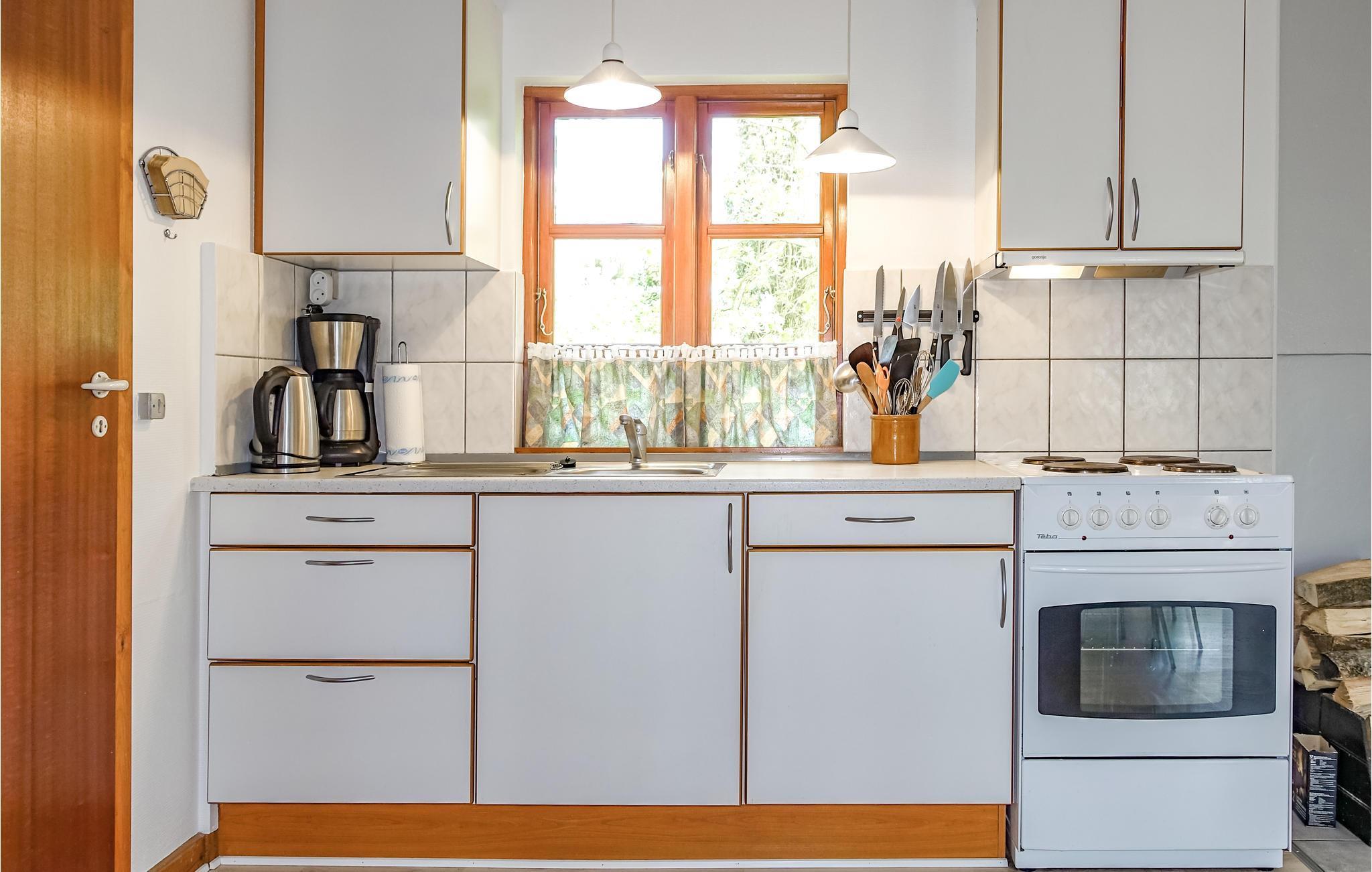 Das geräumige Wohnzimmer verfügt über einen Kaminofen, an dem Sie es an kühlen Abenden gemütlich machen können (Brennholz ist im Preis inkludiert). Die Küche befindet sich im selben Raum, so dass beim Kochen eine gute Verbindung zu den Kindern im Wohnzimmer besteht.