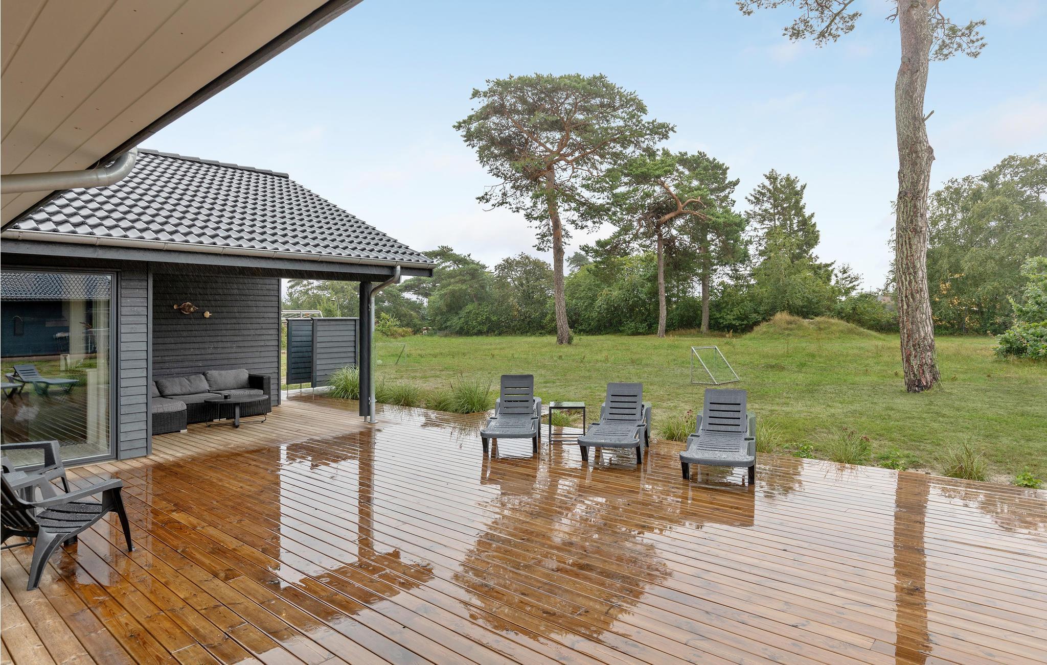 Modernes Holzferienhaus nur 75 m vom Strand Balka, mit großem Garten, Terrasse und Outdoor-Spa für erholsame Ferien.