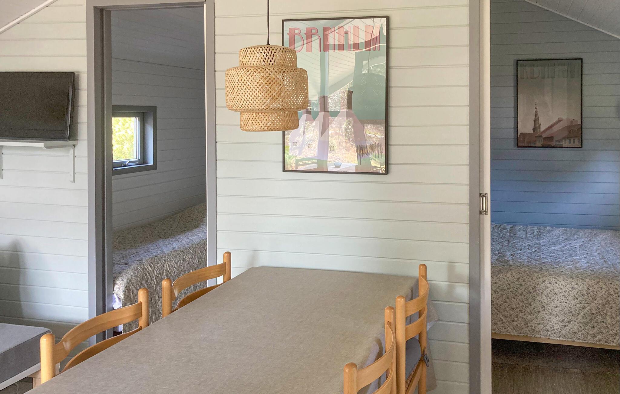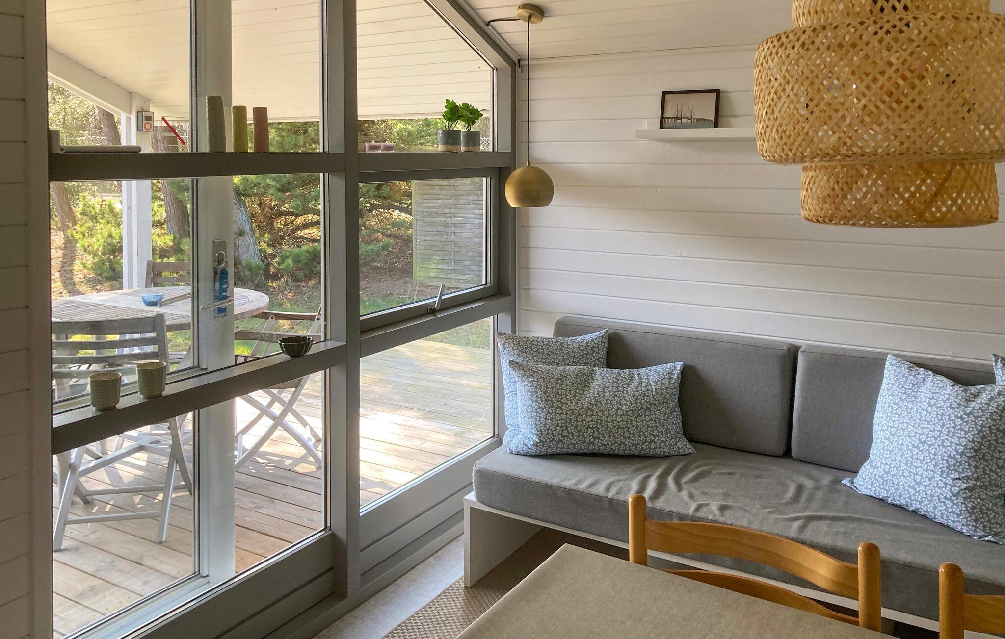 Das Ferienhaus ist gut ausgestattet mit Platz für fünf Personen. Es erwartet Sie ein helles und modernes Interieur im skandinavischen Stil mit einer offenen Küche, in der Sie alle notwendigen Utensilien finden werden. Bereiten Sie einen frisch gebrühten Kaffee und setzen Sie sich in das gemütliche Wohnzimmer oder suchen Sie sich ein lauschiges Plätzchen auf der Terrasse. Die Schlafmöglichkeiten verteilen sich auf ein Doppelbett, ein Etagenbett und ein Einzelbett. Auch Ihr Hund ist willkommen, sodass die ganze Familie gemeinsam Urlaub machen kann.