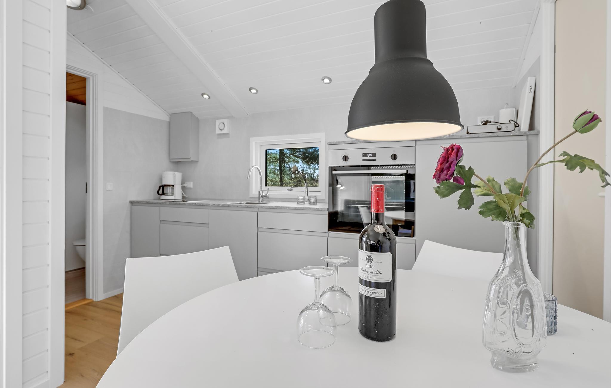 Das Ferienhaus ist bestens ausgestattet mit Platz für zwei Personen. Es erwartet Sie eine gemütliche Einrichtung im skandinavischen Stil mit Küchenzeile. Trinken Sie Ihre Tasse Kaffee im gemütlichen Wohnzimmer oder finden Sie ein lauschiges Plätzchen auf der sonnigen Terrasse.