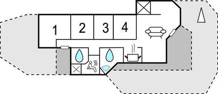 Badezimmer (nr. 1) - WC. Warmes und kaltes Wasser. Dusche