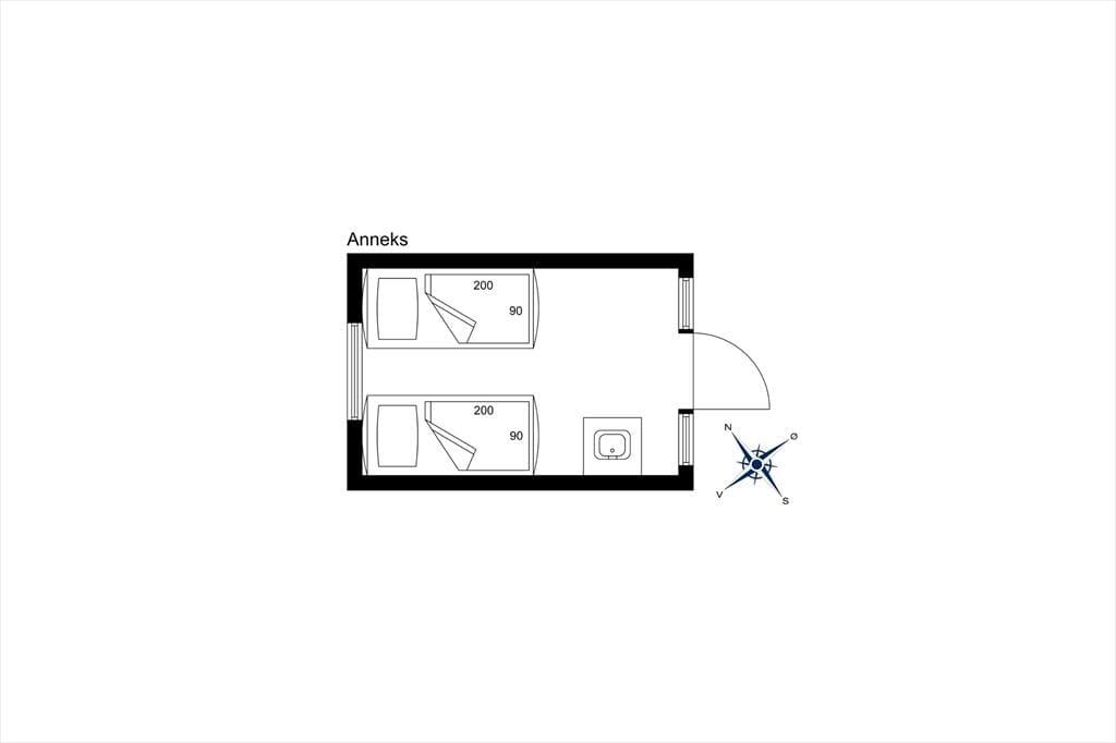 Im Garten begrüßt Sie ein 10 m² großes Nebengebäude, das während der Sommersaison genutzt werden kann. Es beinhaltet einen Holzfußboden, eine kleine Arbeitsplatte mit einem Waschbecken und zwei Einzelbetten. Das Nebengebäude ist gemütlich und verwöhnt mit schönem Blick auf Strand und Meer.