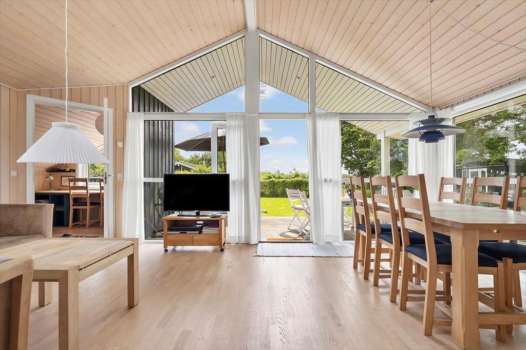 Tritt ein in ein helles und modernes Ferienhaus, das pure Urlaubsidylle und Entspannung ausstrahlt. Hohe Decken, große Fensterfronten und ein wunderbares Gefühl von Licht und Luft schaffen eine einladende Atmosphäre. Das Haus verfügt über drei schöne Schlafzimmer, eine offene Küche in Verbindung mit dem Wohnzimmer und ein praktisches Badezimmer – alles gemütlich eingerichtet mit Fokus auf Komfort und gemeinsame, entspannte Momente.