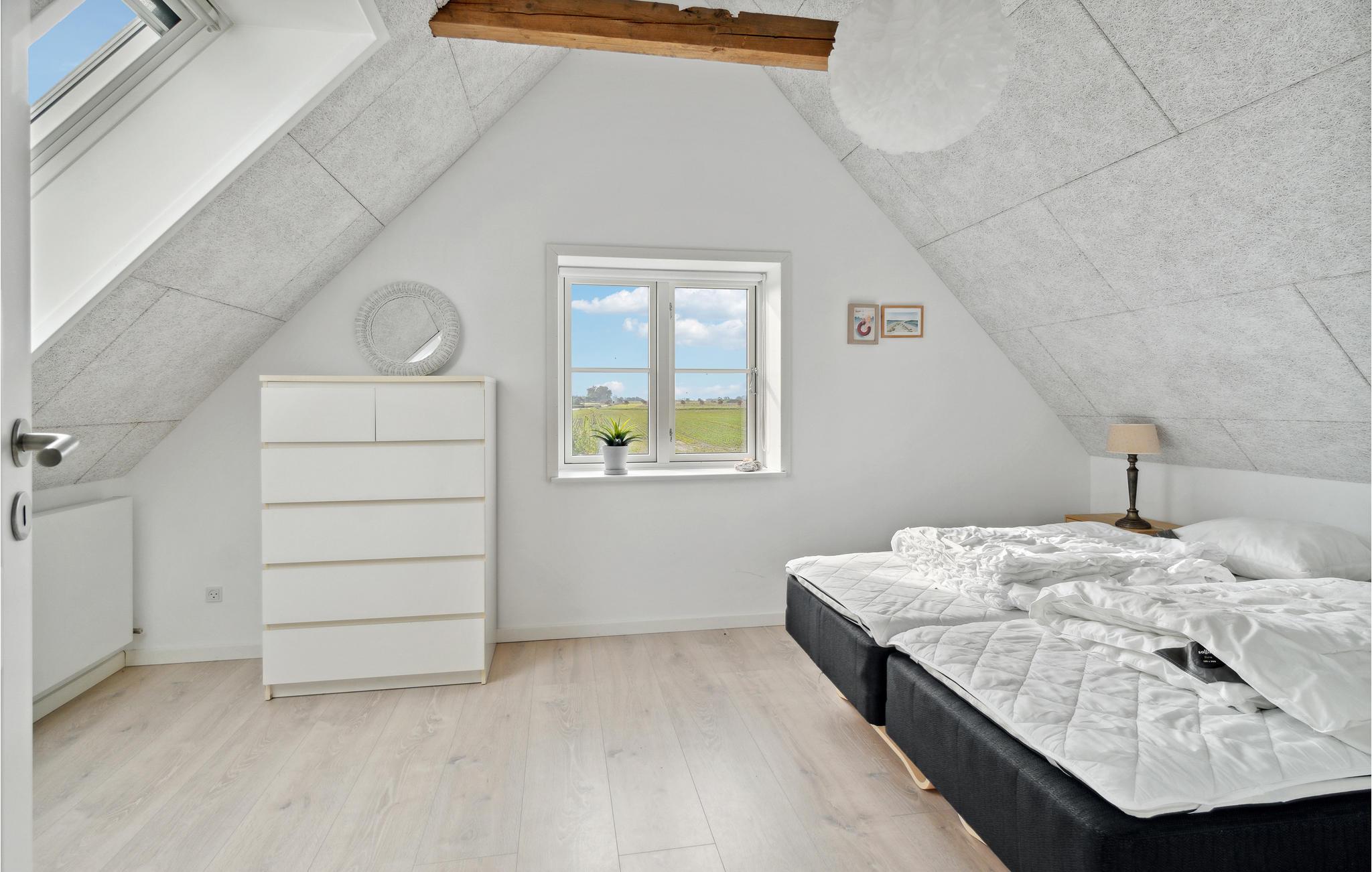 Dieses stilvolle Ferienhaus auf Samsø bietet ruhige Nähe zum Meer und eine gemütliche Atmosphäre mit Blick auf die Felder.
