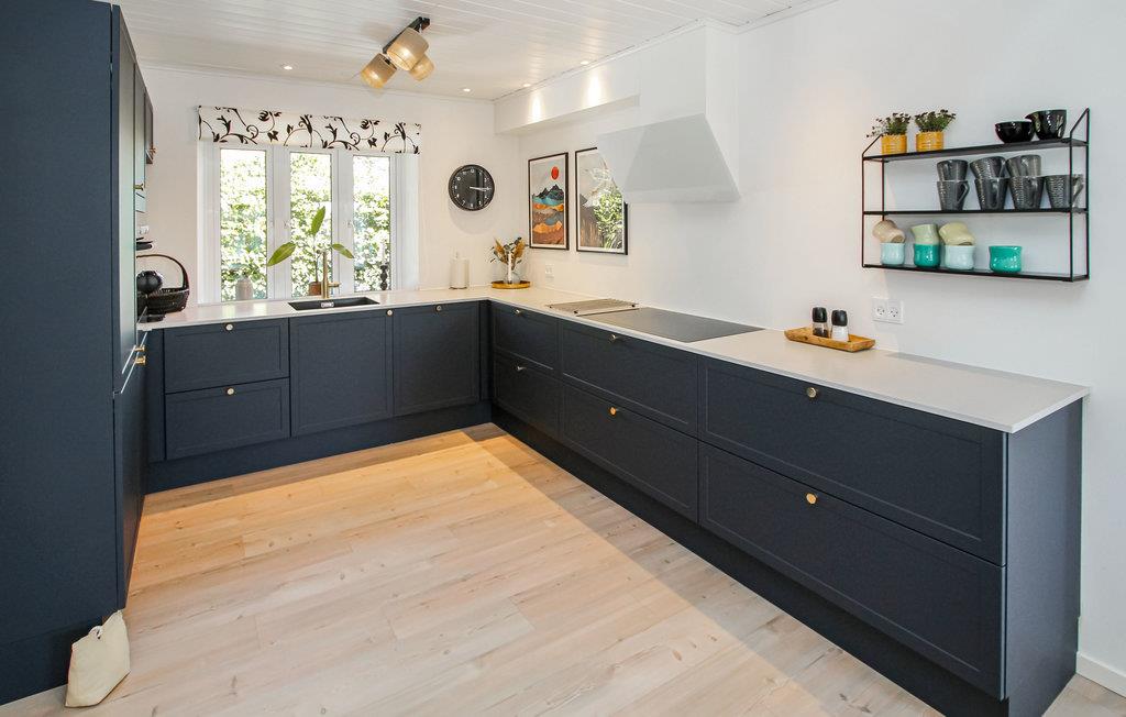 In diesem ansprechenden Haus ist alles auf eine schöne gemeinsame Zeit ausgerichtet. Bereiten Sie gemeinsam in der modernen Küche leckere Mahlzeiten zu, speisen Sie ausgiebig am großen Esstisch und machen Sie es sich später zusammen auf den weichen Sofas gemütlich. Sehen Sie einen Film an, spielen Sie ein Gesellschaftsspiel oder tauschen Sie sich einfach über die Erlebnisse des Urlaubstages aus.