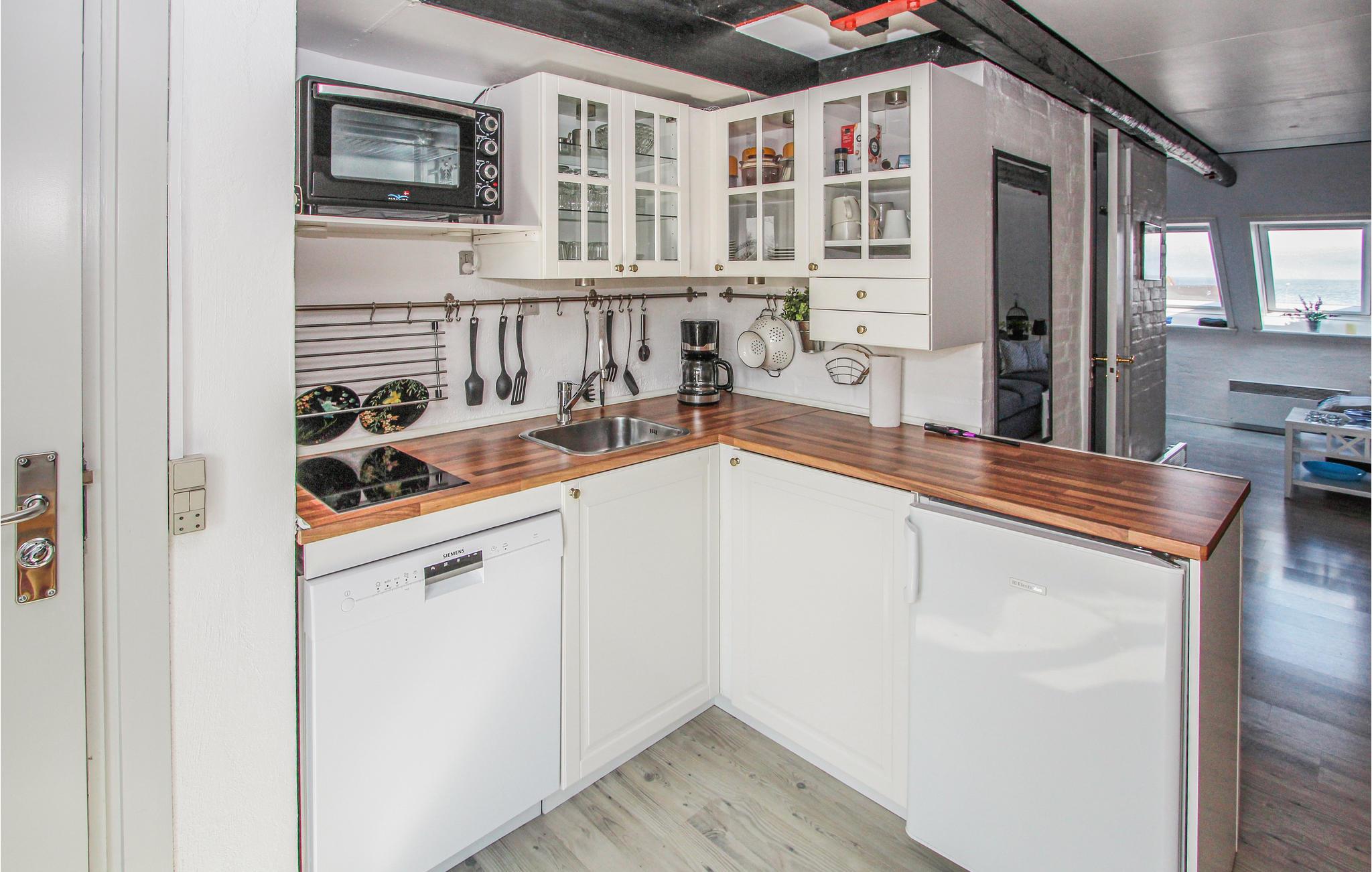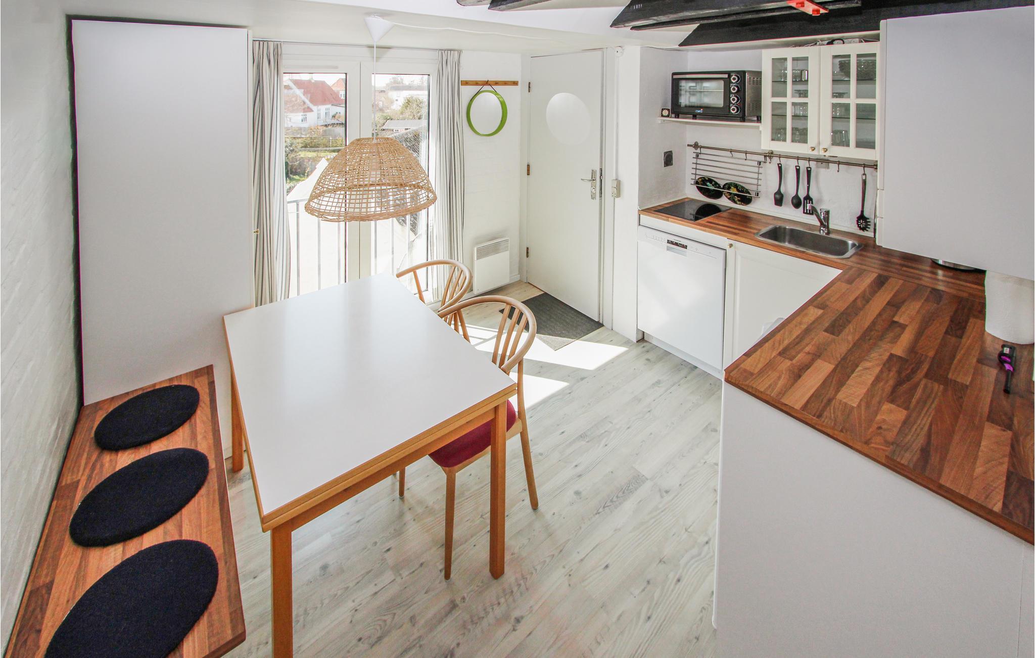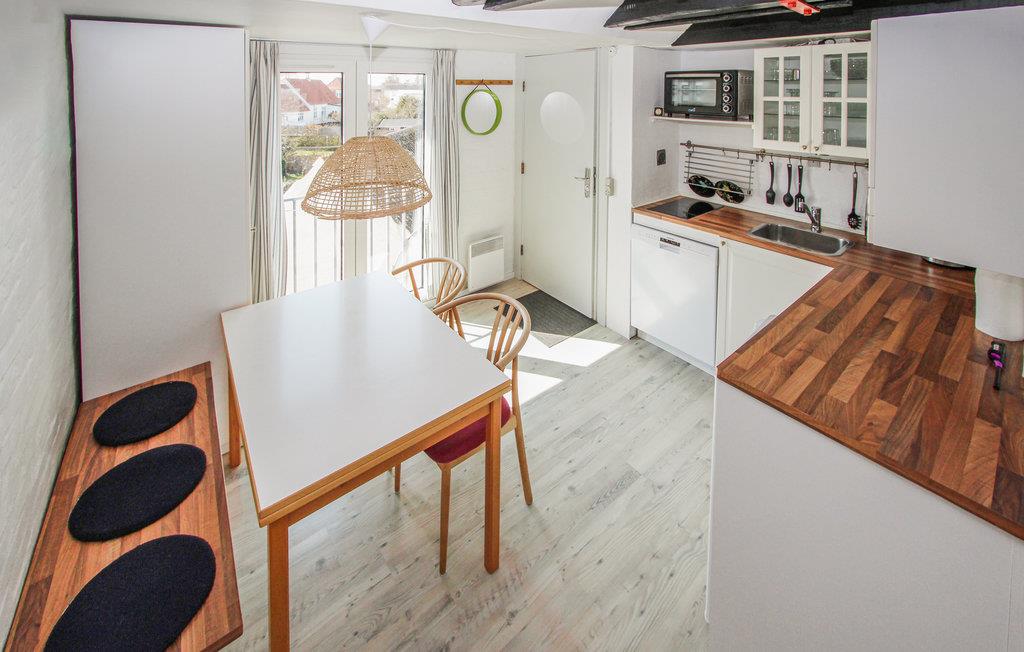 Gemütliche Ferienwohnung mit Meerblick im Hafen von Ballen auf Samsø, ideal für entspannte Tage am Strand und kulinarische Erlebnisse.