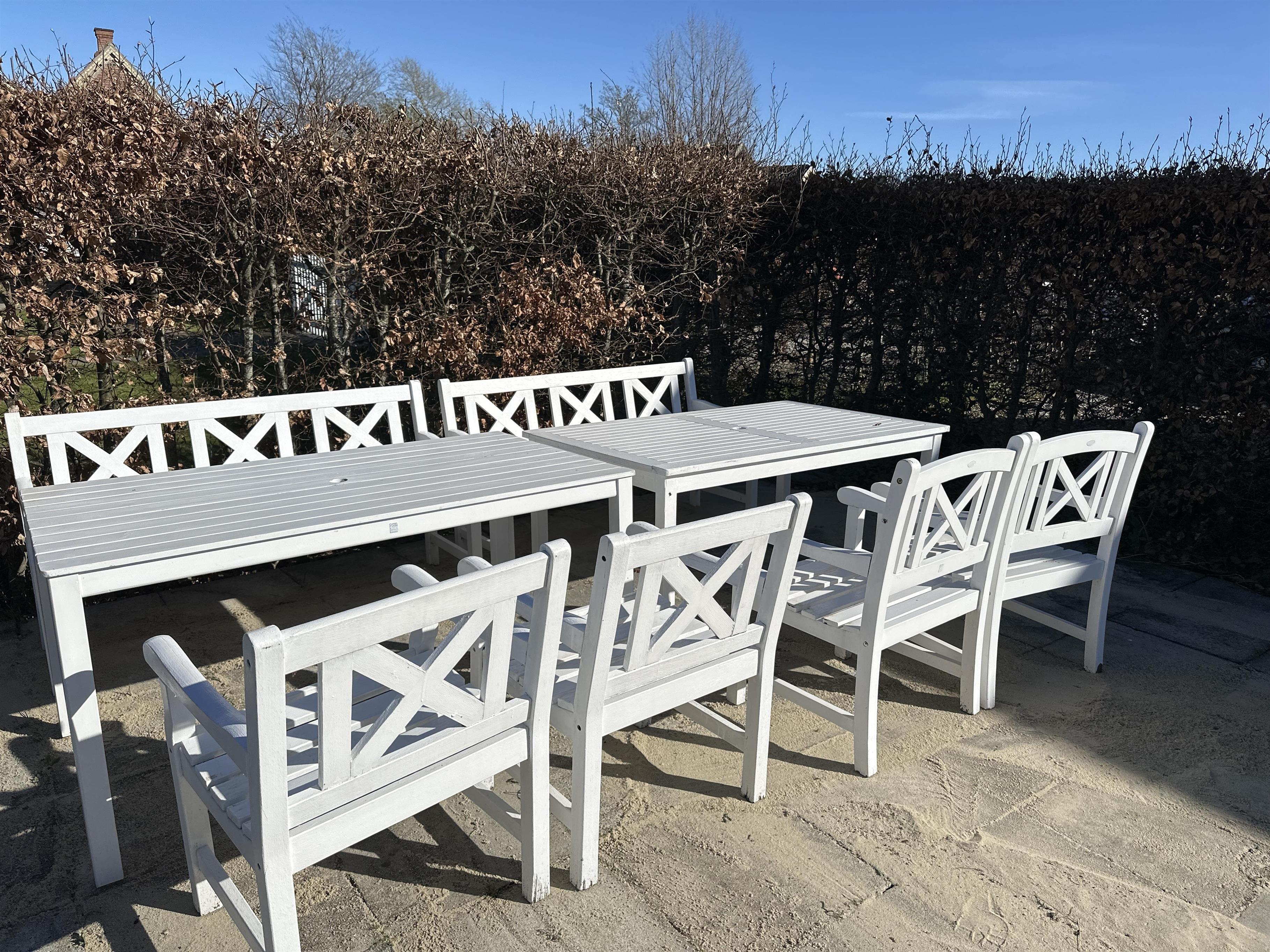 Draußen erwartet Sie eine große, sonnige Terrasse mit Gartenmöbeln und Grill – ideal für gemütliche Grillabende unter freiem Himmel. Sie können sich auch um die Feuerstelle versammeln, während die Kinder auf der Wiese hinter dem Haus spielen.