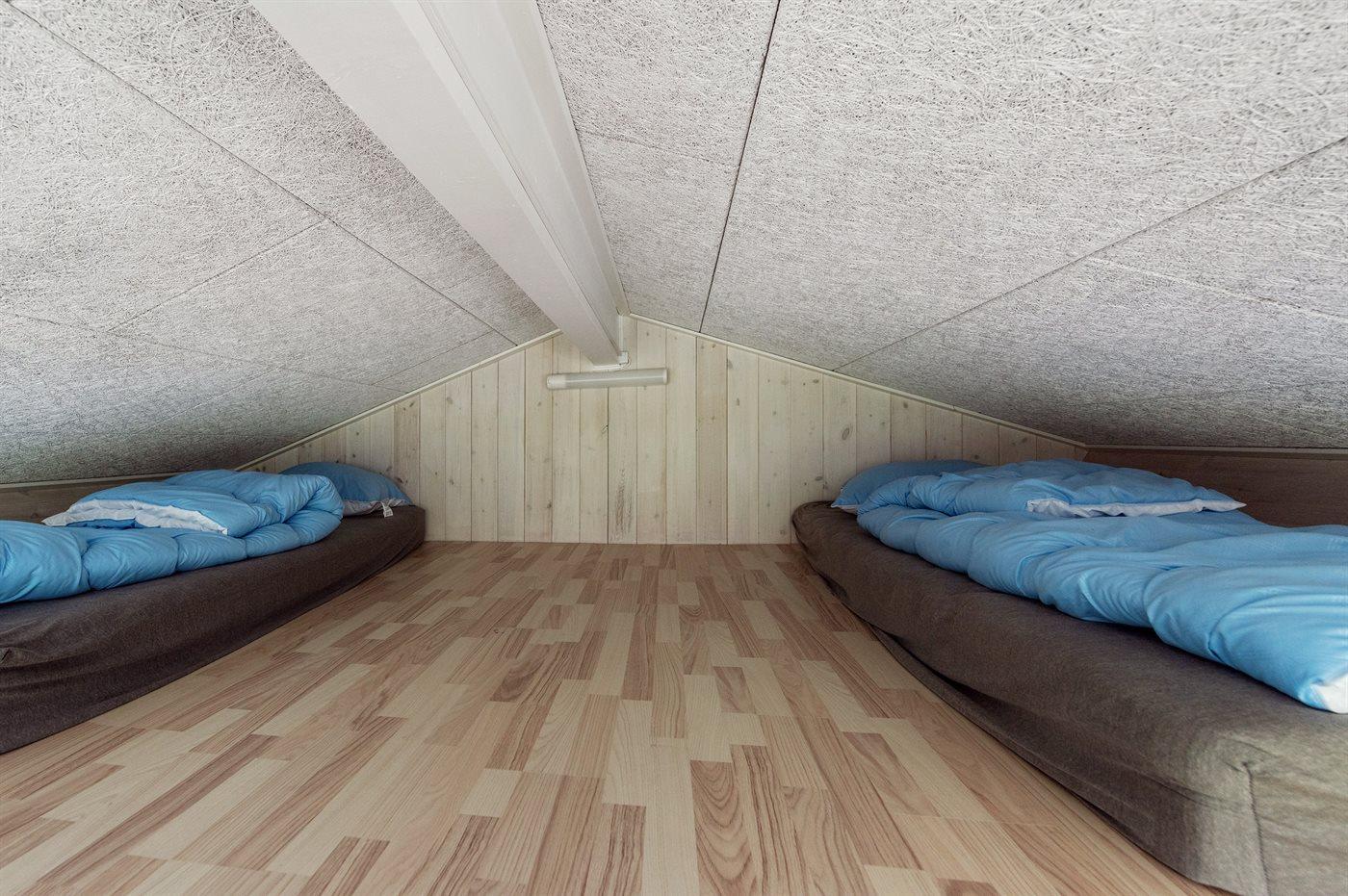 Die Schlafplätze verteilen sich auf 5 Schlafräume. 10 Schlafplätze in Doppelbetten. 2 Schlafplätze auf Matratzen. 2 von diesen Schlafplätzen befinden sich im offenen Obergeschoss. Ferner steht ein Kinderbett zur Verfügung.