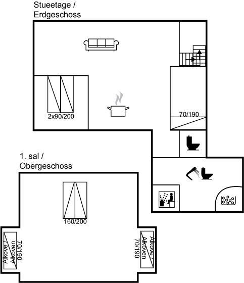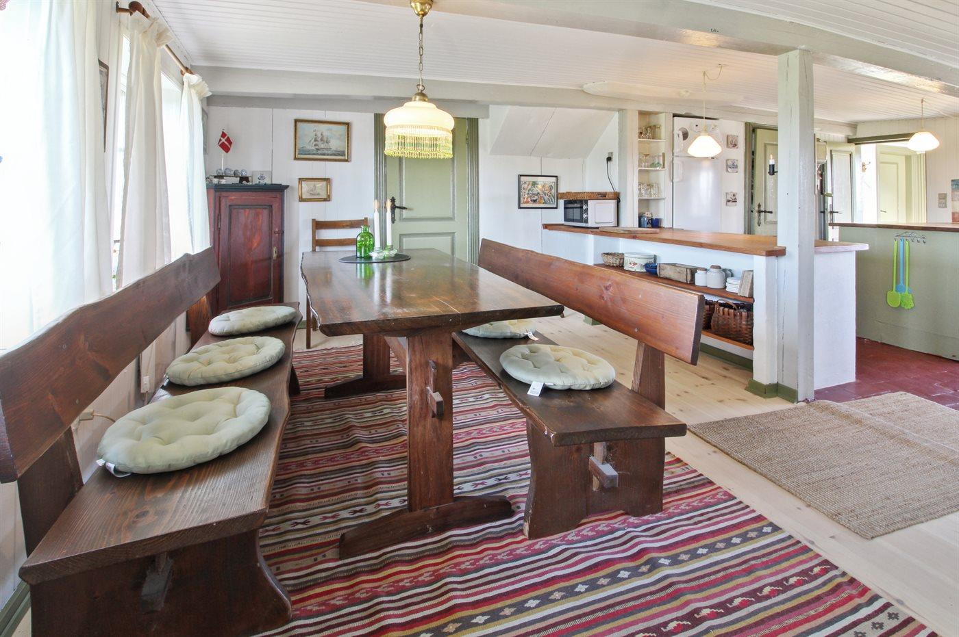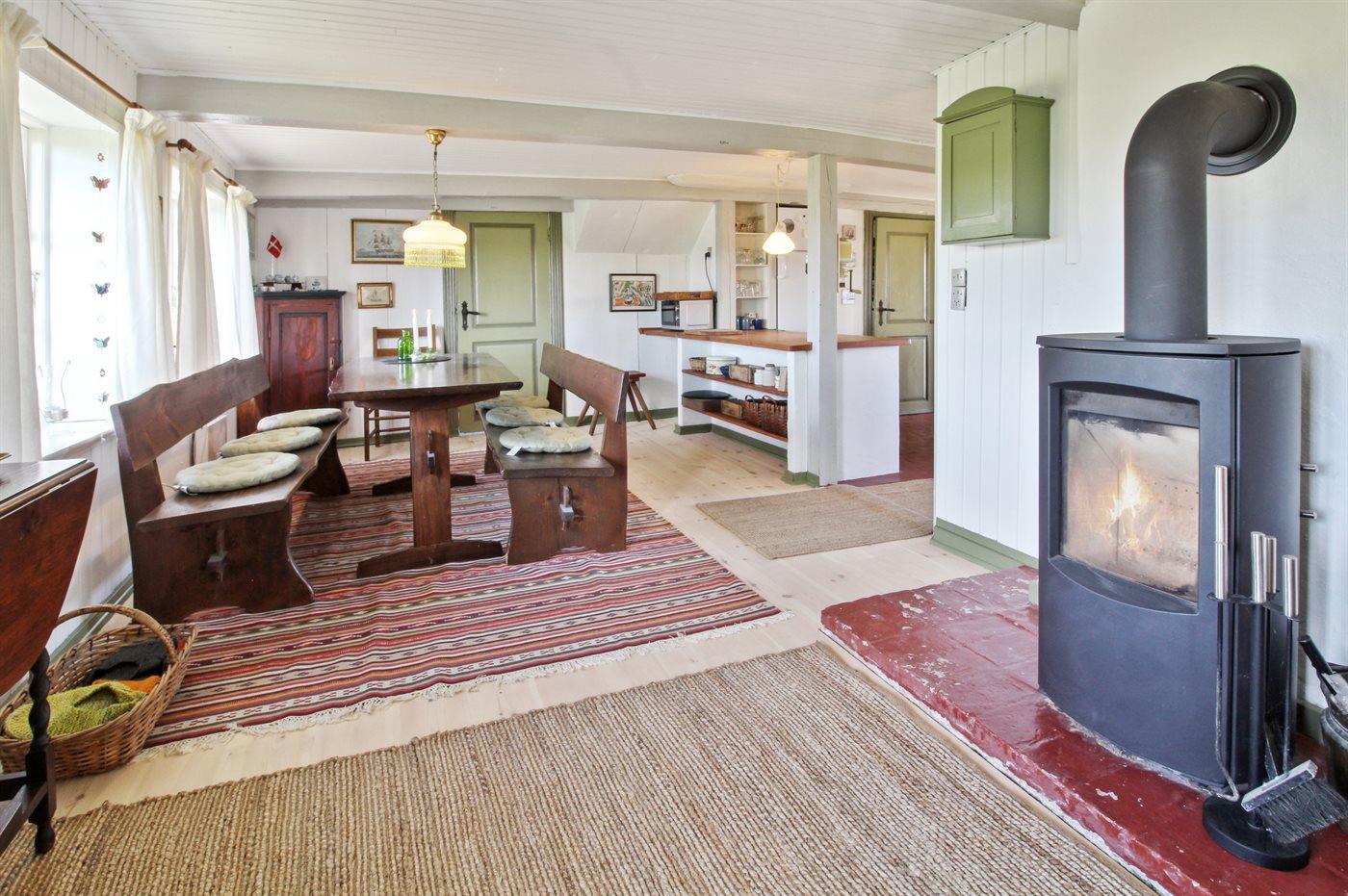 Das Ferienhaus eignet sich für 4 Personen sowie 1 Kleinkind bis zu 3 Jahren. 3 der Schlafplätze eignen sich jedoch nur für größere Kinder (4-11 Jahre). Die Ferienunterkunft hat eine Wohnfläche von 128 m², ist 2-stöckig, und wurde 1844 gebaut. 2012 wurde die Ferienunterkunft teilweise renoviert. Es ist erlaubt 2 Haustiere mitzubringen. Die Ferienunterkunft ist mit energiesparender Wärmepumpe ausgestattet. Die Ferienunterkunft ist mit Waschmaschine ausgestattet. Wäschetrockner. Tiefkühlmöglichkeit mit 16 Liter Nutzinhalt. Es gibt außerdem einen Kaminofen. Für die jüngsten Feriengäste ist 1 Kinderhochstuhl vorhanden.